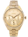 W ofercie naszego sklepu dostępne są markowe zegarki Hugo Boss w kolorze złotym, dedykowane wszystkim kobietom. Są to produkty o wysokiej jakości, stworzone z bardzo trwałych komponentów. Każdy detal damskiego czasomierza Hugo Boss został zaprojektowany w przemyślany i precyzyjny sposób, dzięki czemu ich wygląd odzwierciedla prawdziwie kunsztowną i wysokojakościową produkcję. Zegarek damski Hugo Boss złoty będzie stanowił wspaniały dodatek do stylizacji casualowej oraz eleganckiej. Dopełni strój formalny jak garnitur czy elegancka sukienka, a także sprawdzi się podczas codziennego użytku, gdy tylko jego posiadaczka pragnie dodać sobie i swojej stylizacji blasku. Złote zegarki od dawna towarzyszą kobietom i świetnie sprawdzają się w roli biżuterii, a czasomierze od tego producenta nie tylko zdobią, ale również precyzyjnie wskazują godzinę, a niektóre z nich wzbogacone są dodatkowymi funkcjami jak multidatownik. Warto zapoznać się z prezentowanymi zegarkami i skorzystać z atrakcyjnych ofert cenowych, które przygotował sklep Crazytime.