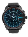 Luksusowe męskie zegarki Diesel, to produkty, które zachwycają swoim designem, jak również perfekcją wykonania. Na pierwszy rzut oka widać, że są bardzo nowoczesne, a solidna konstrukcja, którą czujemy trzymając w ręku zegarek tylko potwierdza tą tezę.  Wyroby zaprojektowane przez Renzo Rosso, stały się symbolem wielkomiejskich dodatków do stylizacji sportowych, casualowych i tych bardziej formalnych. Niezawodny mechanizm kwarcowy, odpowiada za precyzyjne odmierzenie upływającego czasu. Funkcjonalny datownik ze wskaźnikiem dnia miesiąca, może z powodzeniem zastąpić używany do tej pory kalendarz papierowy lub elektroniczny. Co więcej - każdy model Diesel Master Chief, posiada wysoką klasę wodoszczelności. Funkcja Neobrite dostępna, w niektórych modelach w postaci fosforyzowanych wskazówek i indeksów, umożliwia swobodny odczyt wartości godzinowych, nawet w pomieszczeniach całkowicie pozbawionych światła słonecznego. Godnymi zainteresowania są też zegarki Diesel Mr Daddy. To modele cenione przede wszystkim przez mężczyzn z nieco szerszymi nadgarstkami, ponieważ mają one stosunkowo duży obwód. Nietuzinkowy wygląd tych wyrobów czyni je efektowną ozdobą stroju. Wspaniałe czasomierze Diesel Mr Daddy posiadają olbrzymia kopertę, oraz tarczę na której można ustawić cztery różne czasy. Zegarki męskie Diesel to typowo miejskie wyroby zegarmistrzowskie, które zostały zaprojektowane z dbałością o każdy, nawet najmniejszy szczegół. Marka Diesel od samego początku swojego istnienia tworzy produkty unikatowe, które przykuwają uwagę i prezentują się niezwykle efektownie na męskim nadgarstku.