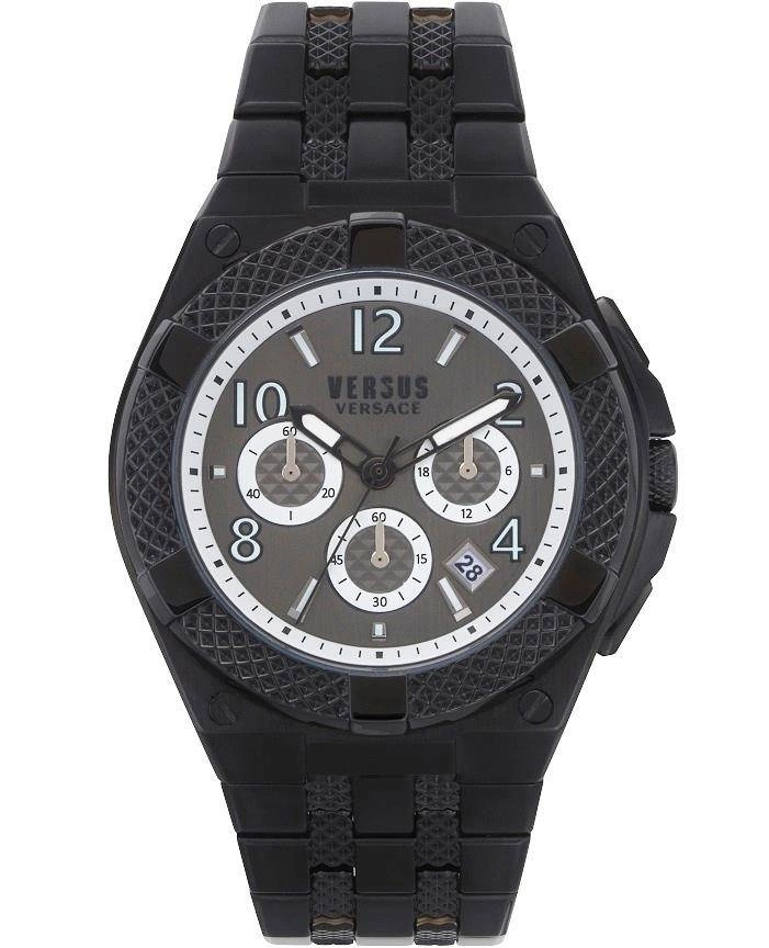 - Zegarek Męski Versus Versace VSPEW0419 czarny na bransolecie, posiada funkcje takie jak stoper i datownik.