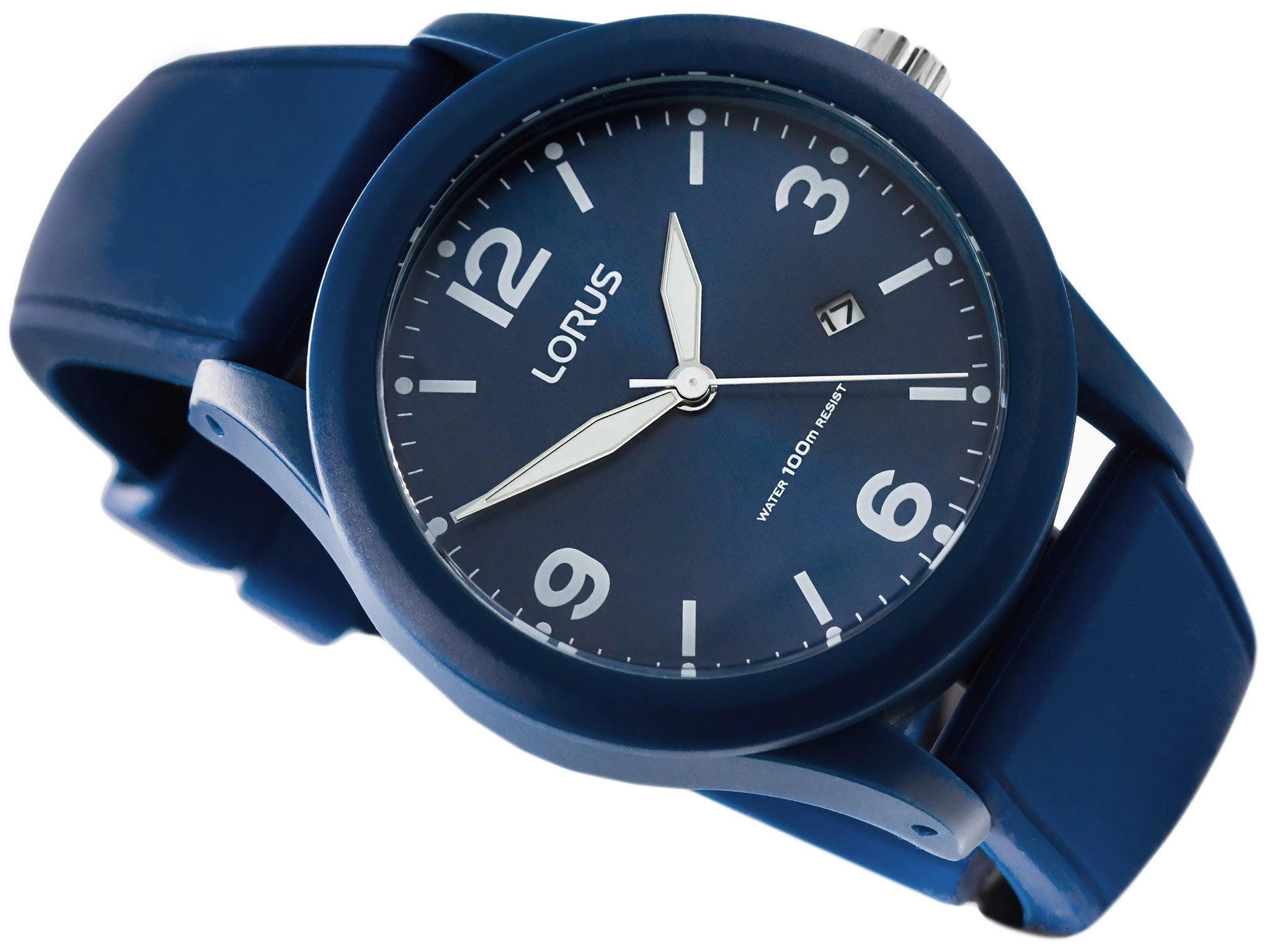 - Wodoszczelny Zegarek Męski Lorus RH953LX9 granatowy na pasku, posiada funkcję datownika.