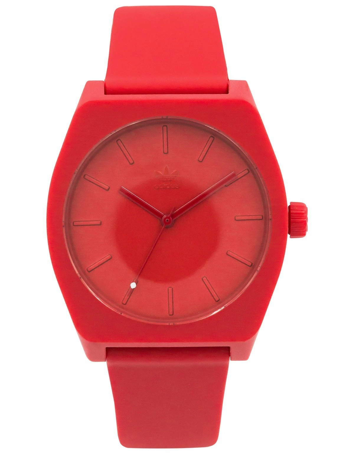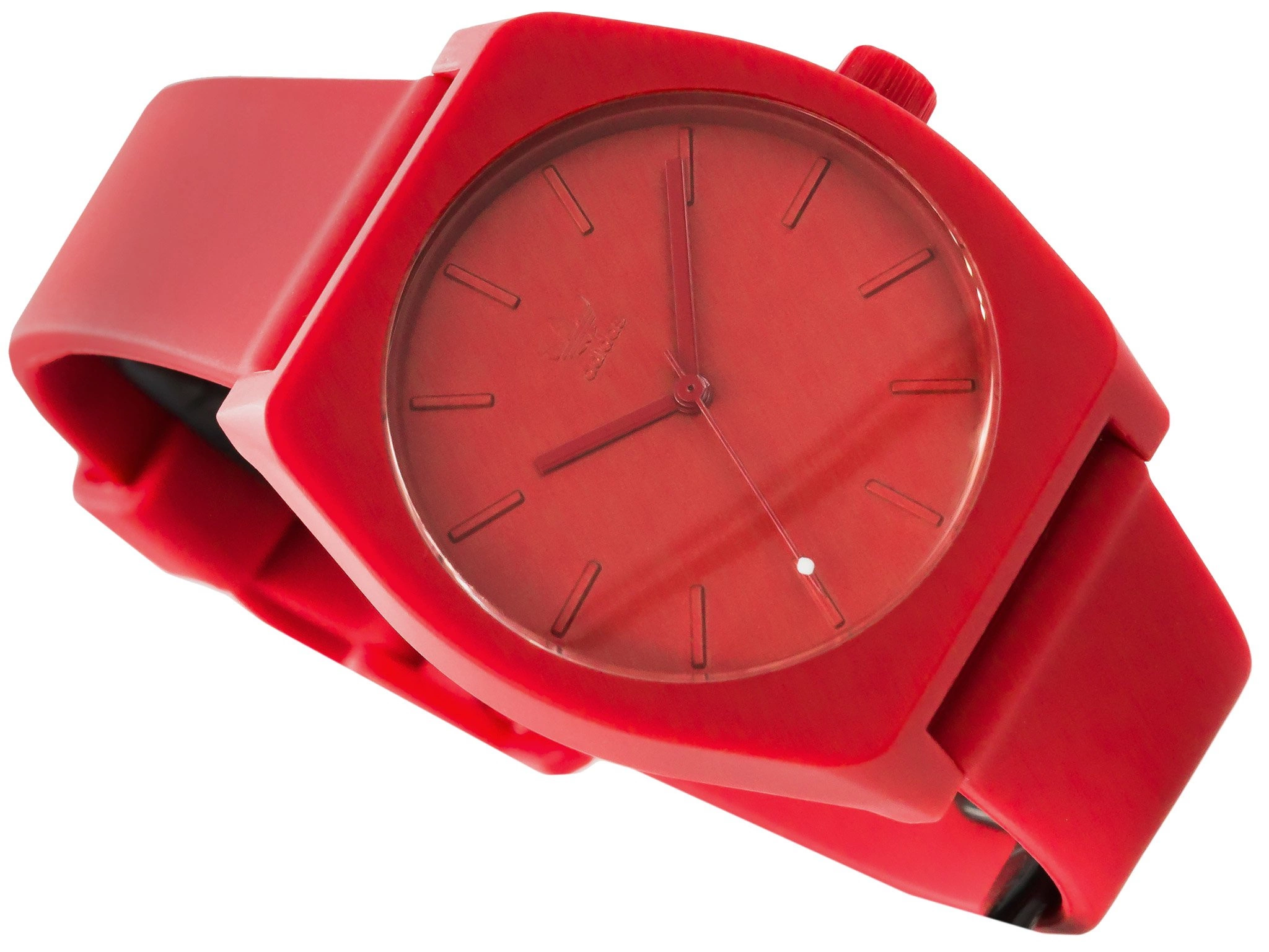 Zegarek Adidas Z10191 wykonany jest w całości z tworzywa sztucznego, dzięki czemu idealnie dopasowuje się do nadgarstka i jest wygodny. Wszystkie elementy modelu Z10191 są w kolorze czerwonym co sprawia, że jest on w swojej minimalistycznej formie bardzo stylowy. Na tarczy chronionej mineralnym szkiełkiem umieszczono logo producenta marki ADIDAS. W zegarku niezwykle precyzyjnie pracuje japoński, kwarcowy mechanizm, który jest zasilany baterią. Model ADIDAS Z10191 posiada w zestawie oryginalne pudełko, które sprawdzi się jako opakowanie na prezent, ale również przyda się podczas przechowywania zegarka.
