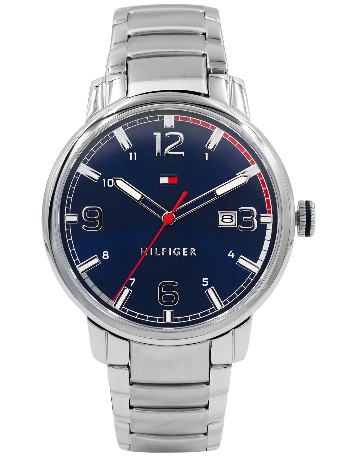 • Zegarek Męski Tommy Hilfiger 1791754 srebrny na bransolecie, posiada funkcję datownika.