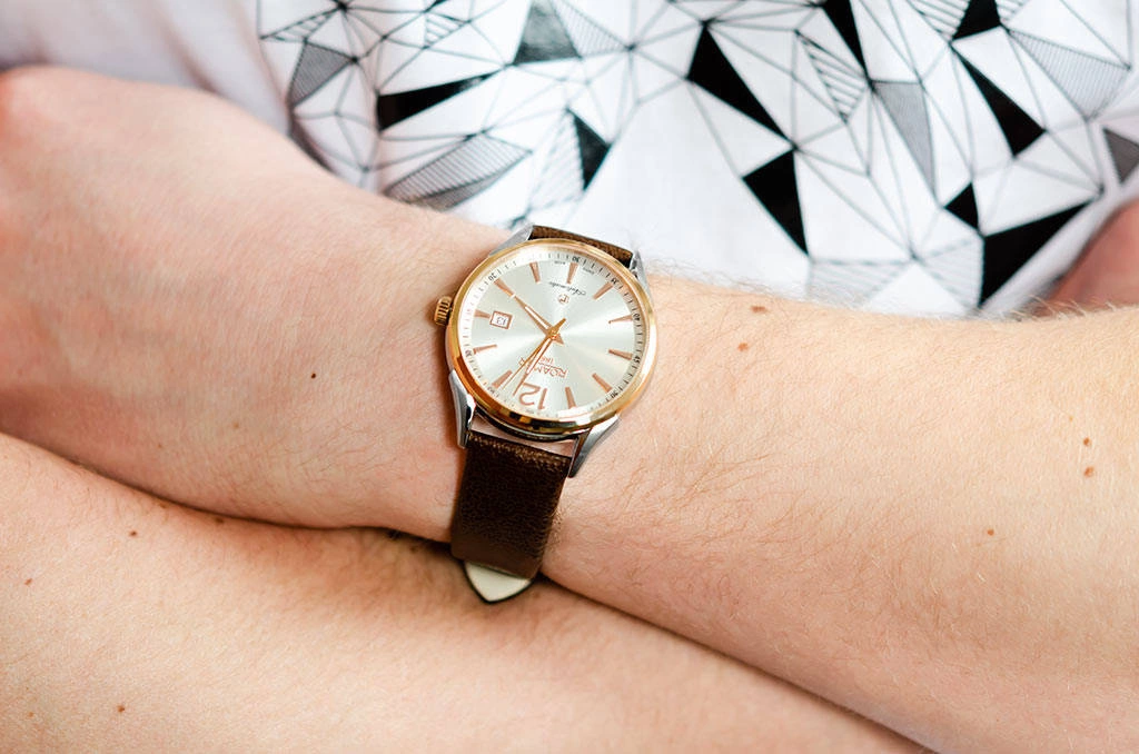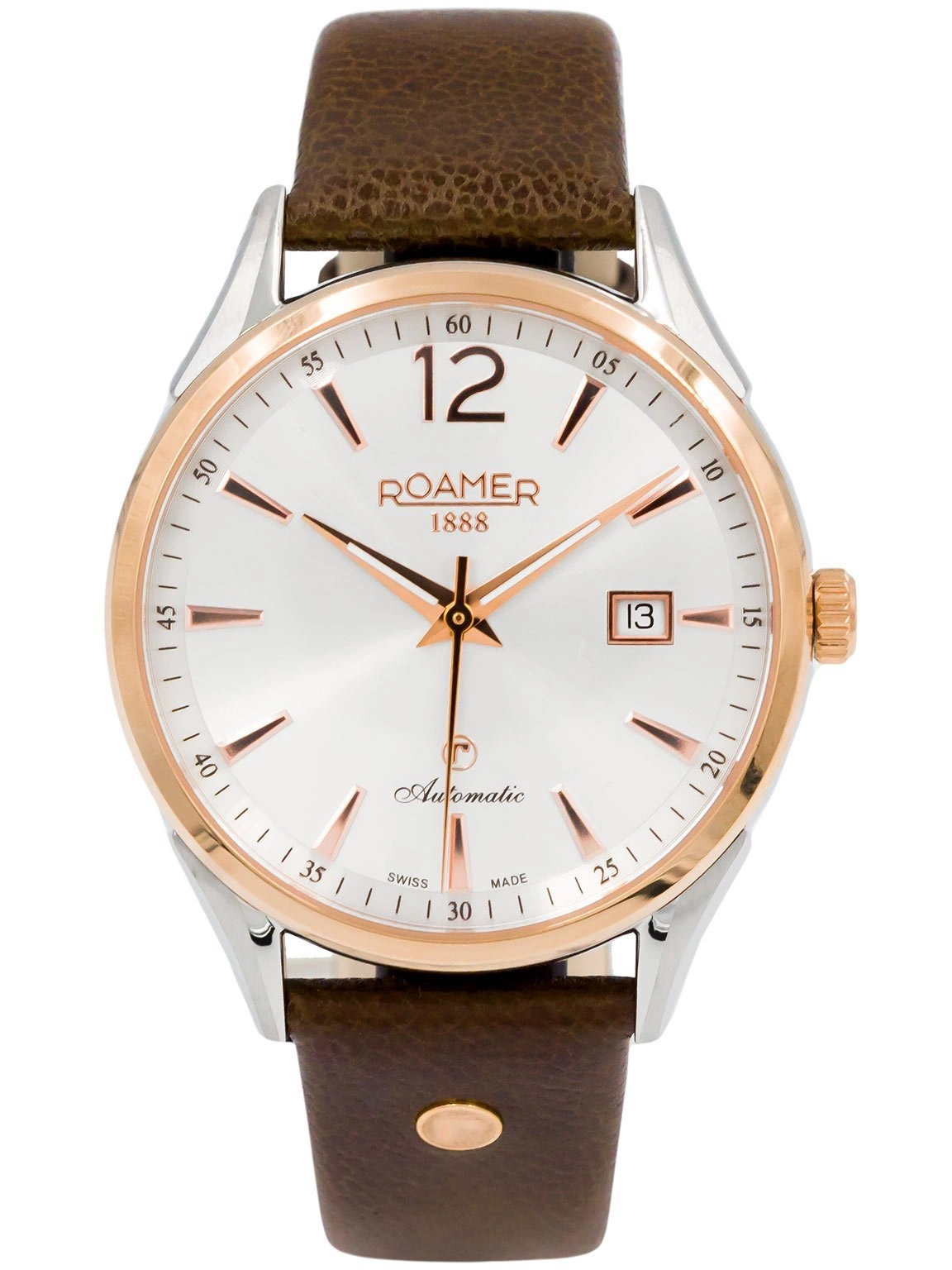 - Automatyczny Zegarek Męski Roamer 550660 49 25 05 brązowy na pasku, posiada funkcję datownika. Zegarek wodoszczelny.