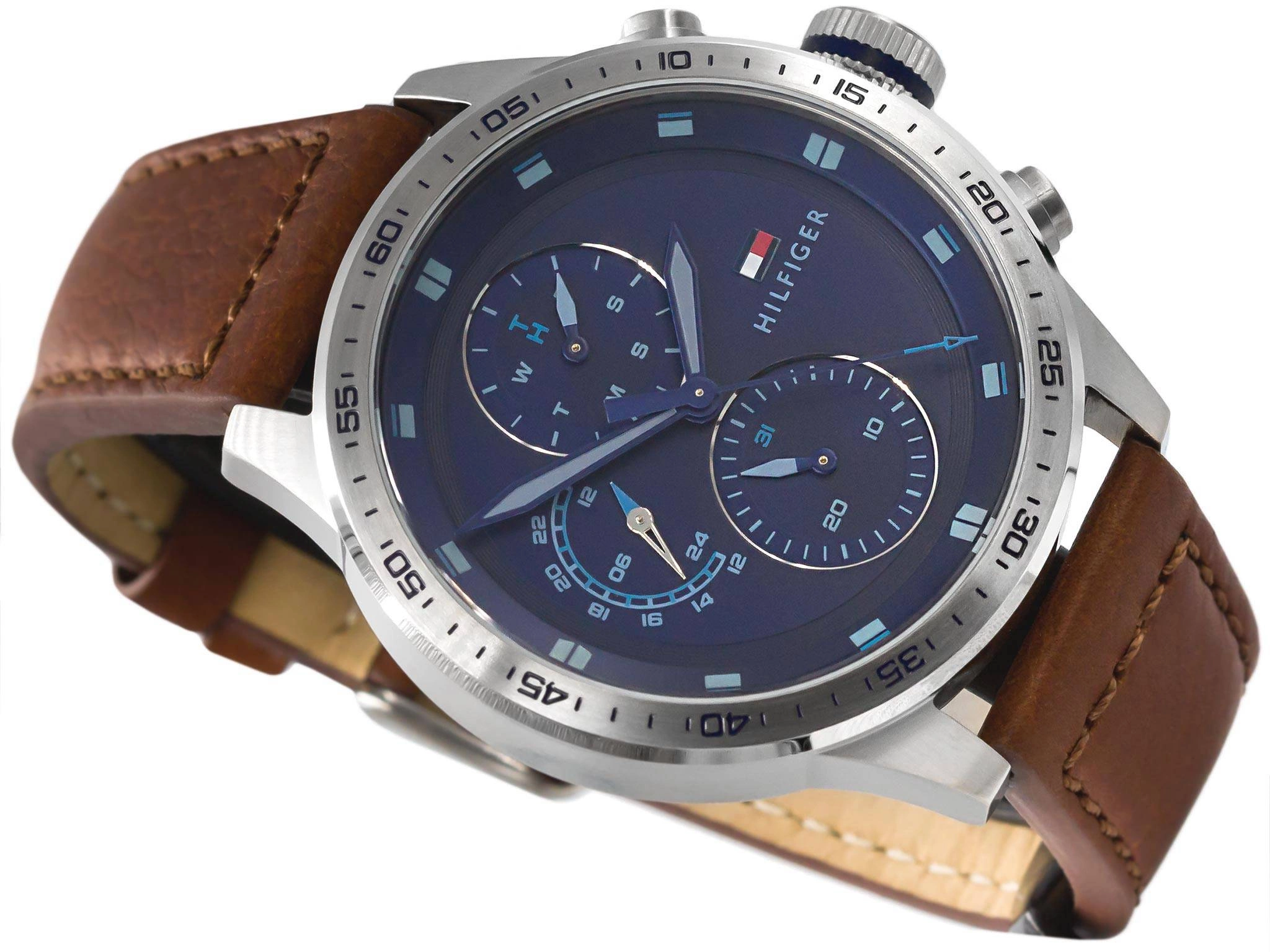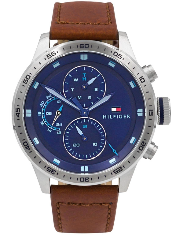 - Zegarek Męski Tommy Hilfiger 1791807 brązowy na pasku, posiada funkcję datownika.