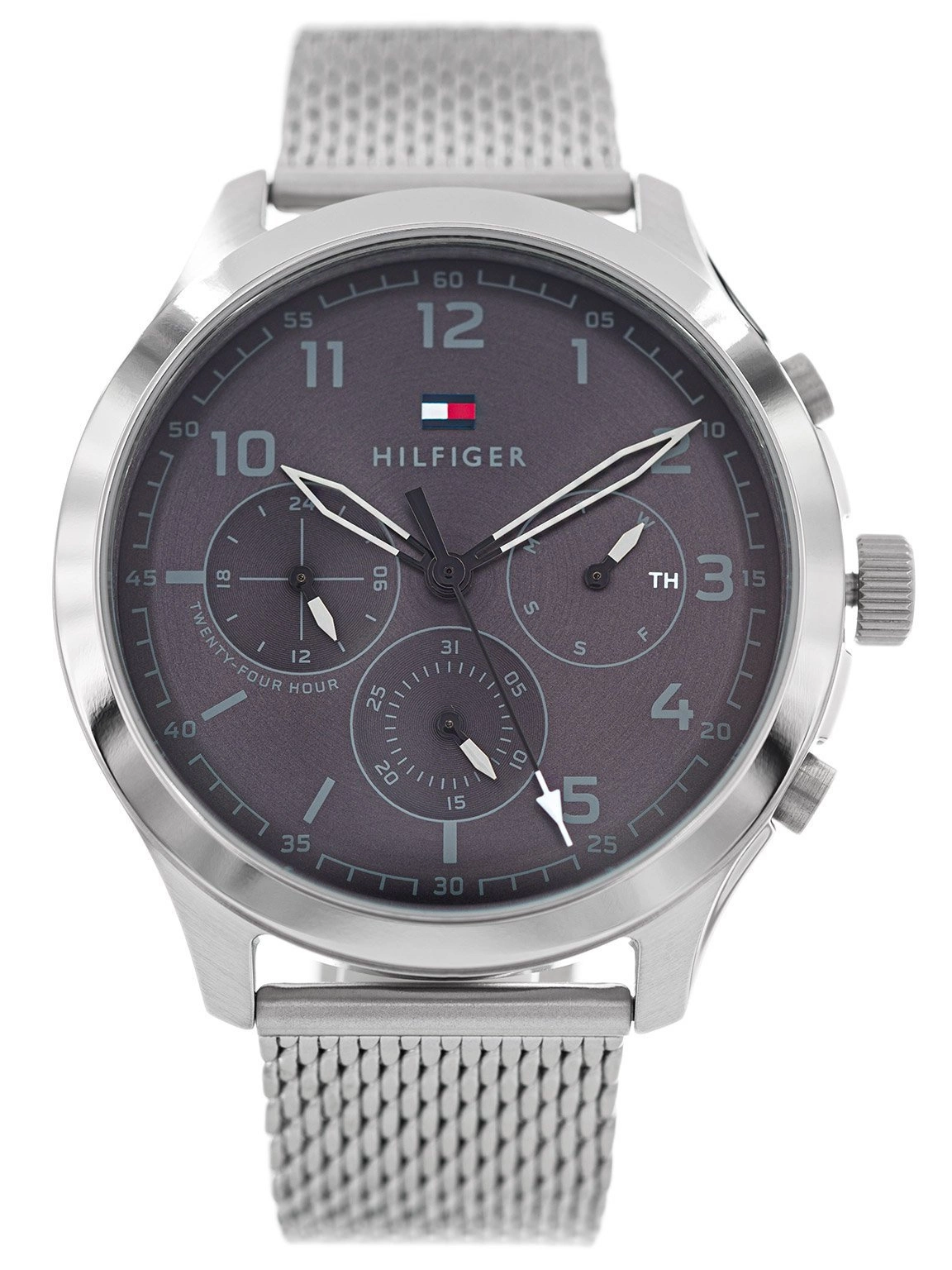 Tommy Hilfiger 1791851 jest napędzany mechanizmem kwarcowym, z wymienną baterią. W całości został wykonany ze stali szlachetnej, odpornej na korozję. Model ten został wyposażony w rozbudowany datownik, wskazuje aktualny dzień miesiąca, dzień tygodnia oraz czas w formacie 24 godzinnym. Koperta zegarka została zawieszona na niezwykle efektownej, srebrnej bransolecie w typie mesh, doskonale dopasowującej się do nadgarstka. Tommy Hilfiger Asher 1791851 zapakowany jest w eleganckie pudełko, więc świetnie sprawdzi się na prezent.