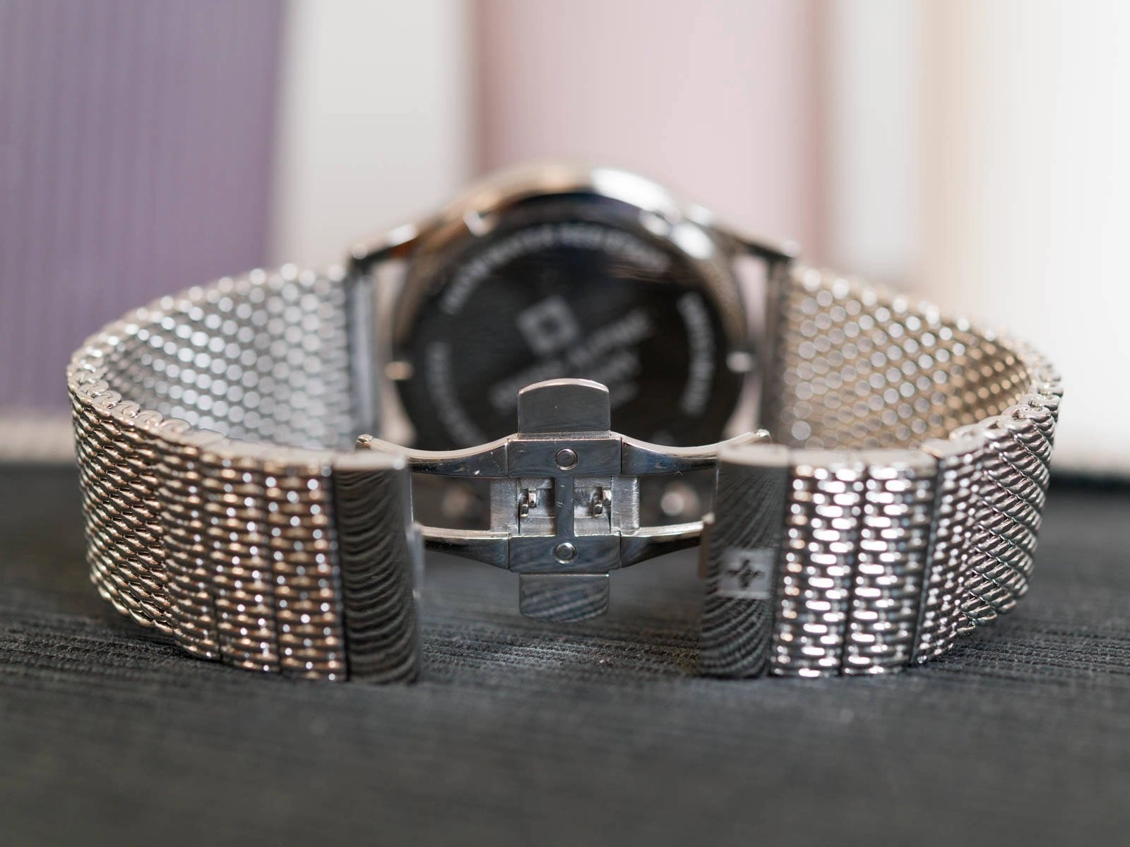 - Mechanizm: kwarcowy, zasilany baterią, Swiss Made Ronda 5030.D