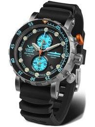 - Wodoszczelny Zegarek Męski Vostok Europe VK61-571H614 czarny na pasku, posiada funkcje takie jak stoper i datownik.