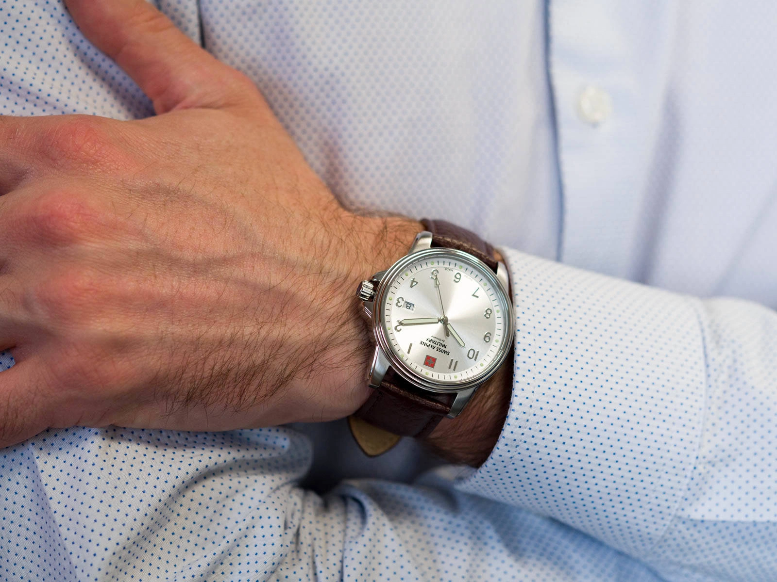 Swiss Alpine Military SAM7011.1532 jest ofertą skierowaną do nowoczesnego mężczyzny. Ten europejski produkt wyposażony jest w mechanizm kwarcowy RONDA 515.H. Datownik w tym modelu pokazuje aktualny dzień miesiąca, znajduje się on przy godzinie 3. Wskazówki i indeksy zostały pokryte powłoką Neobrite, która po naświetleniu świeci przez jakiś czas. Klasa wodoszczelności 100M pozwala na pływanie z zegarkiem na ręku. Koperta wykonana jest z wysokiej jakości stali szlachetnej, która została zawieszona na brązowym pasku ze skóry naturalnej. SAM7011.1532 uatrakcyjni każdy codzienny ubiór, sprawdzi się też podczas bardziej uroczystych okazji.