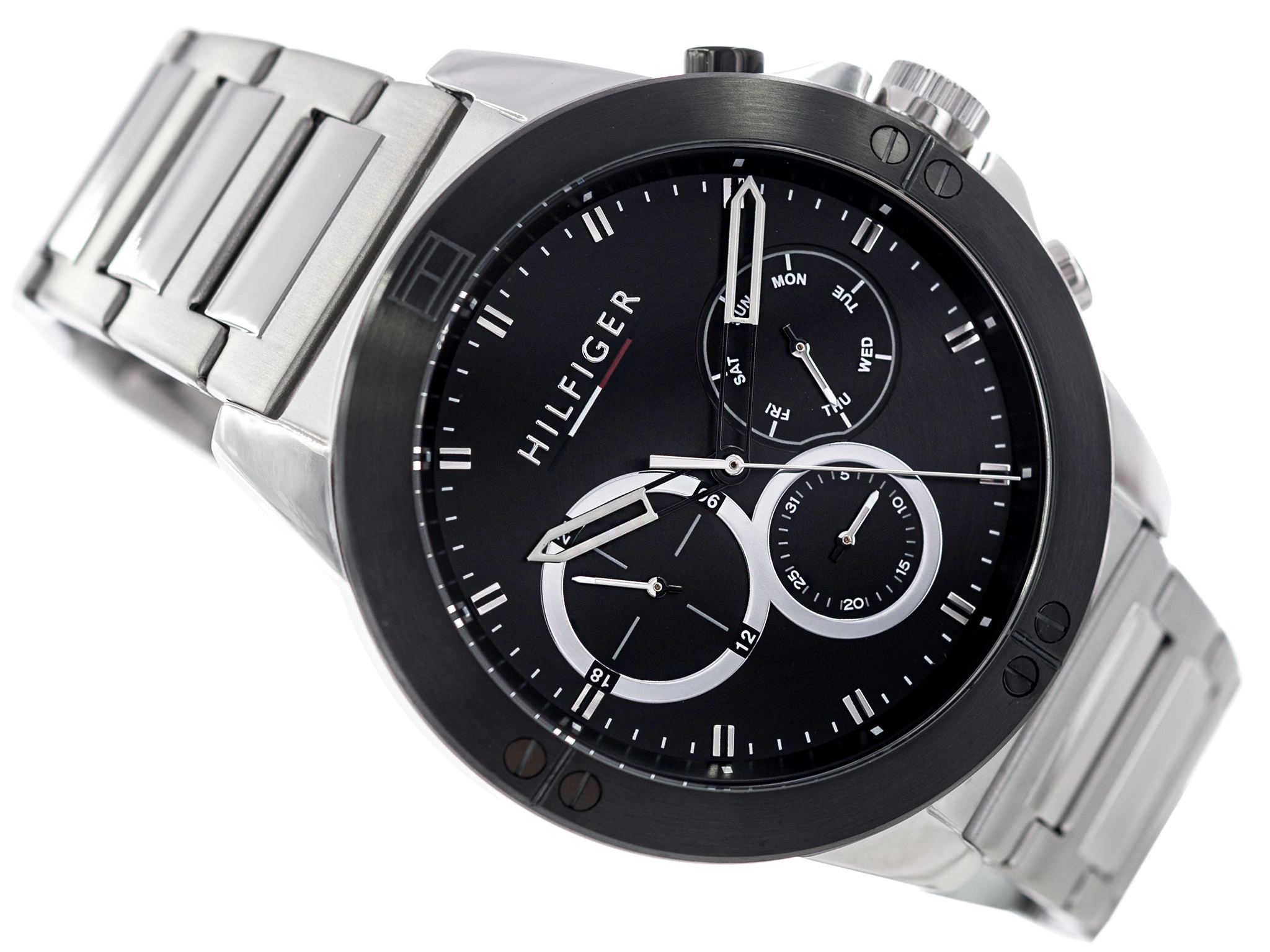 - Zegarek Męski Tommy Hilfiger 1791890 srebrny na bransolecie, posiada funkcję datownika.