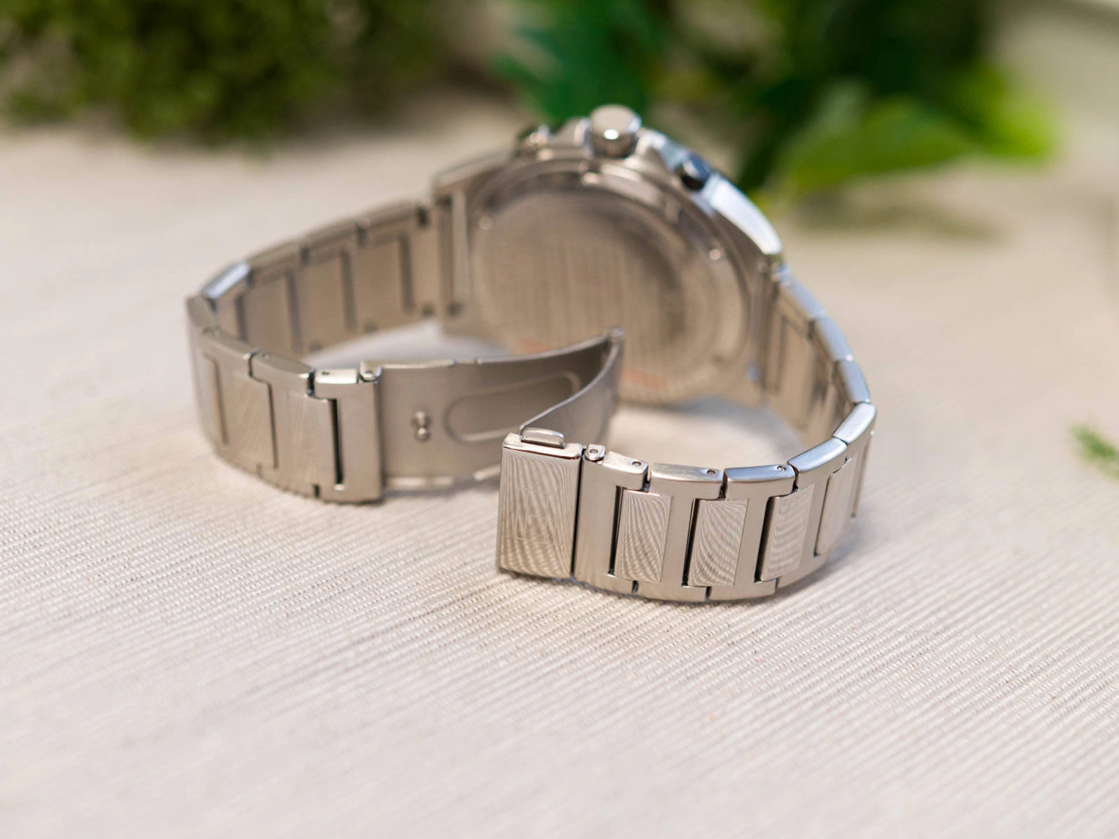 - Bransoleta: wykonana ze stali szlachetnej, która charakteryzuje się najwyższym stopniem odporności na korozję - pełne zamknięcie.