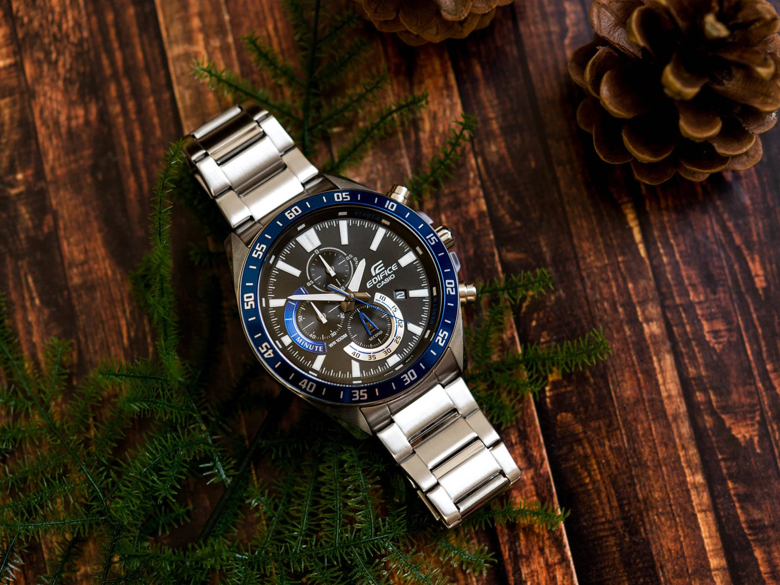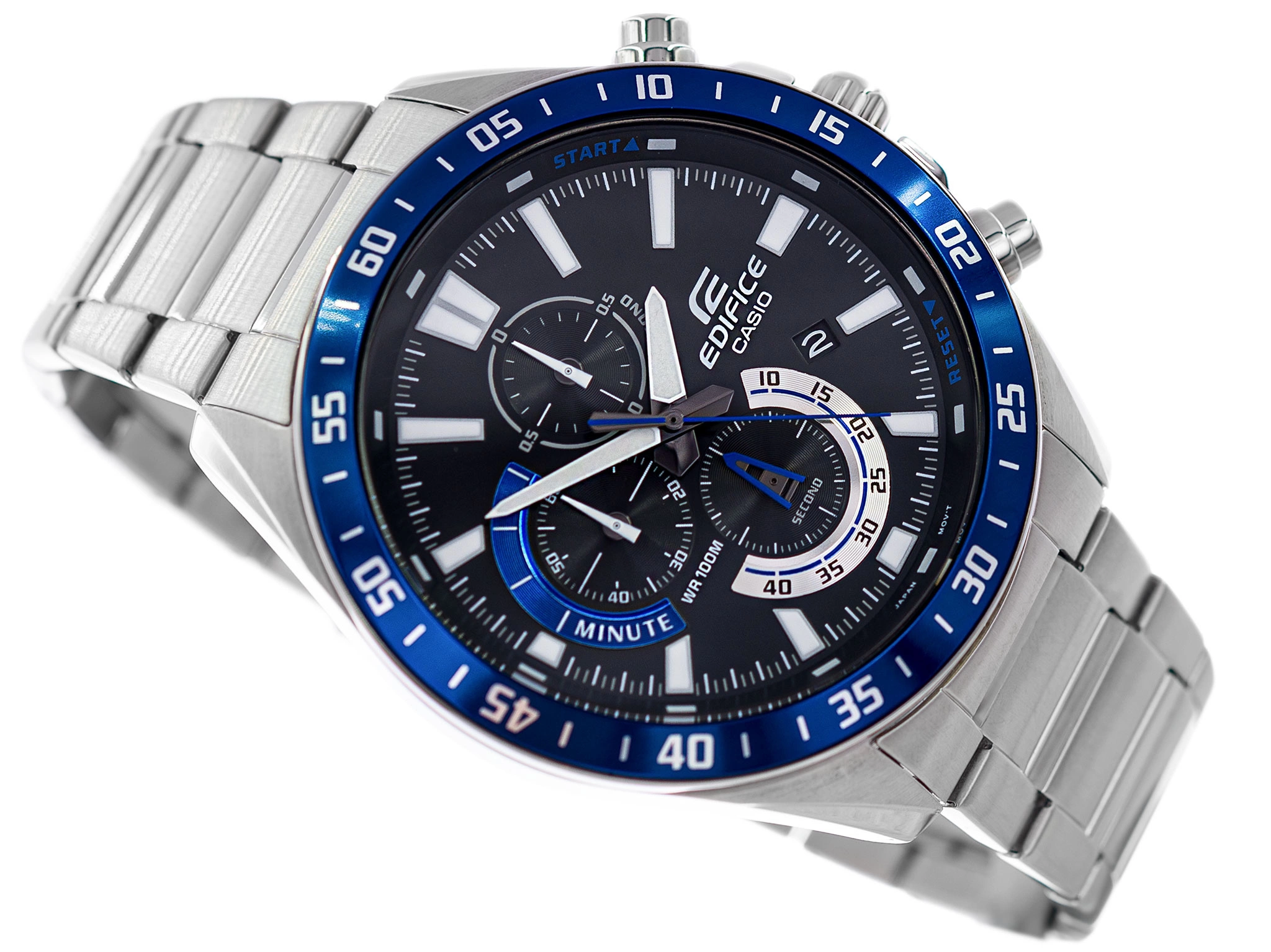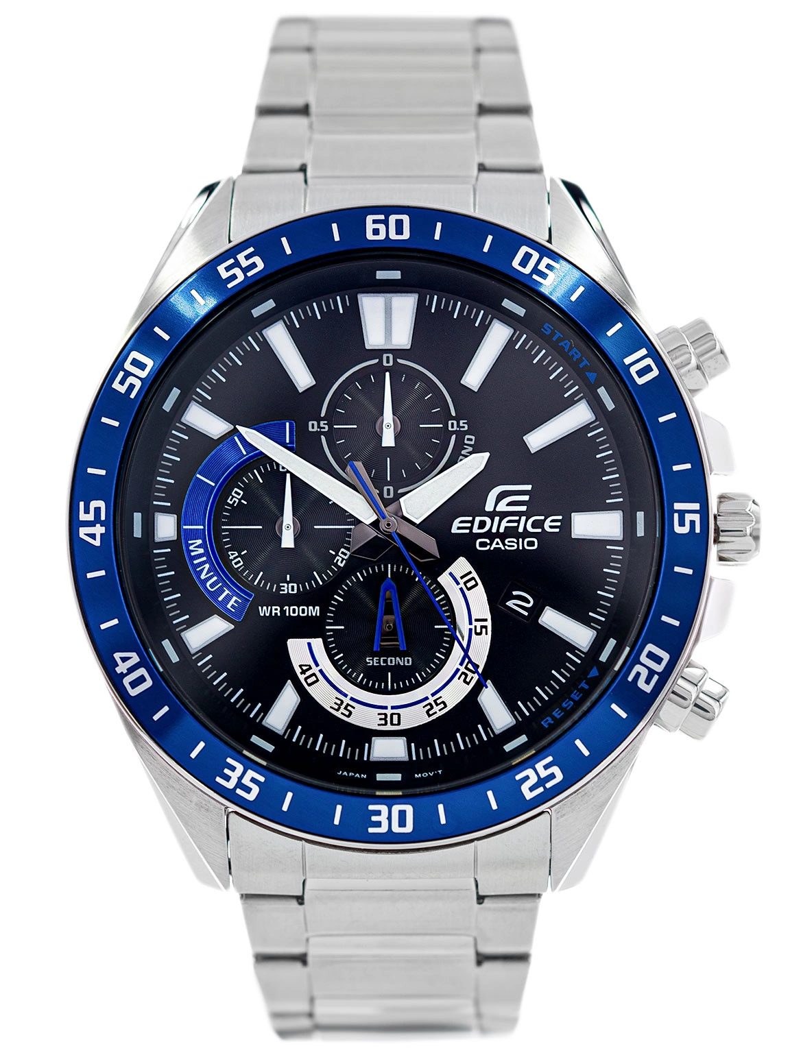 Casio EFV-620D-1A2VUEF z serii EDIFICE wykonany jest ze stali szlachetnej odpornej na korozję. Na czarnej tarczy umieszczone są wyraźne, białe, pionowe indeksy, które wyznaczają godziny. Wskazówki są fosforyzowane, więc po naświetleniu świecą przez jakiś czas. Model ten został wyposażony w stoper analogowy, który obsługuje się za pomocą bocznych przycisków. Podczas zatrzymania pomiaru, zegarek wskaże minuty, sekundy oraz 1/10 sekund, które upłynęły. Klasa wodoszczelności 100M, pozwala pływać z zegarkiem na ręku, jednak należy pamiętać aby nie wciskać pod wodą przycisków. Datownik wskazujący dzień miesiąca, usytuowany został przy godzinie 4. Ze względu na pokaźne gabaryty, Casio EFV-620D 1A2V bardzo efektownie prezentuje się na męskim nadgarstku.