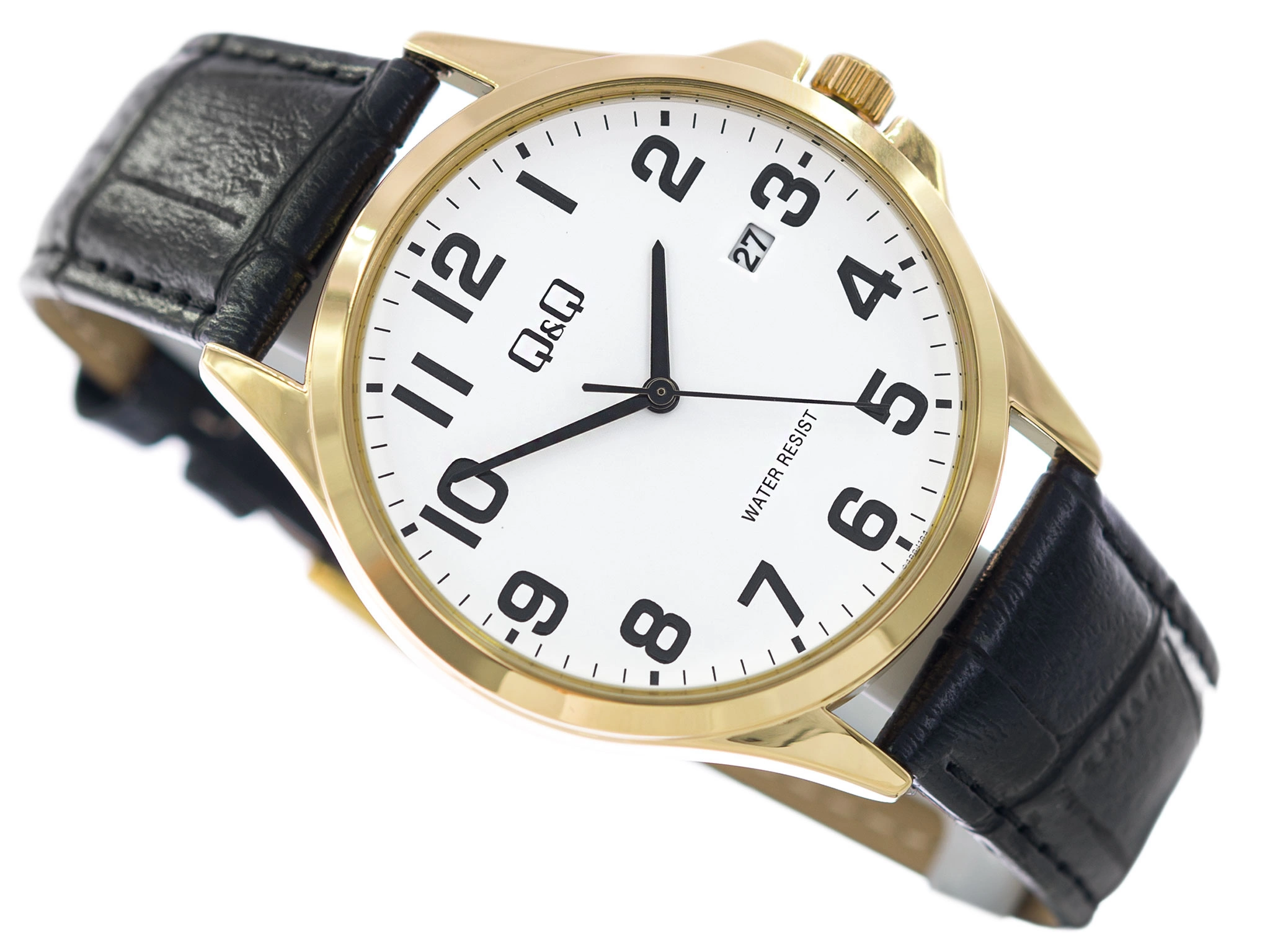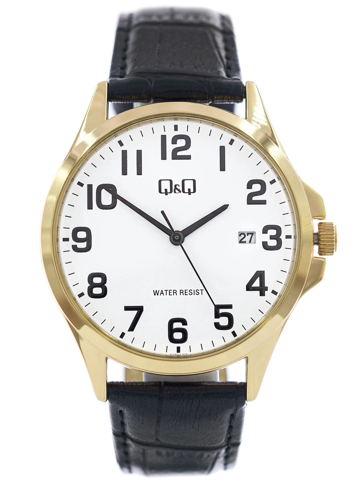 Q&Q A480J104Y jest propozycją dla mężczyzn, którzy poszukują klasycznego zegarka. Oprócz podstawowej funkcji odmierzania czasu, model ten wyposażony jest w datownik. W przypadku krótszych miesięcy, datę należy korygować ręcznie. Na czytelnym, białym cyferblacie, zamieszczone są wyraźne czarne cyfry arabskie. Złota koperta zawieszona jest na czarnym, wygodnym pasku. Takie połączenie kolorów, powoduje że zegarek będzie idealnym dodatkiem na co dzień.