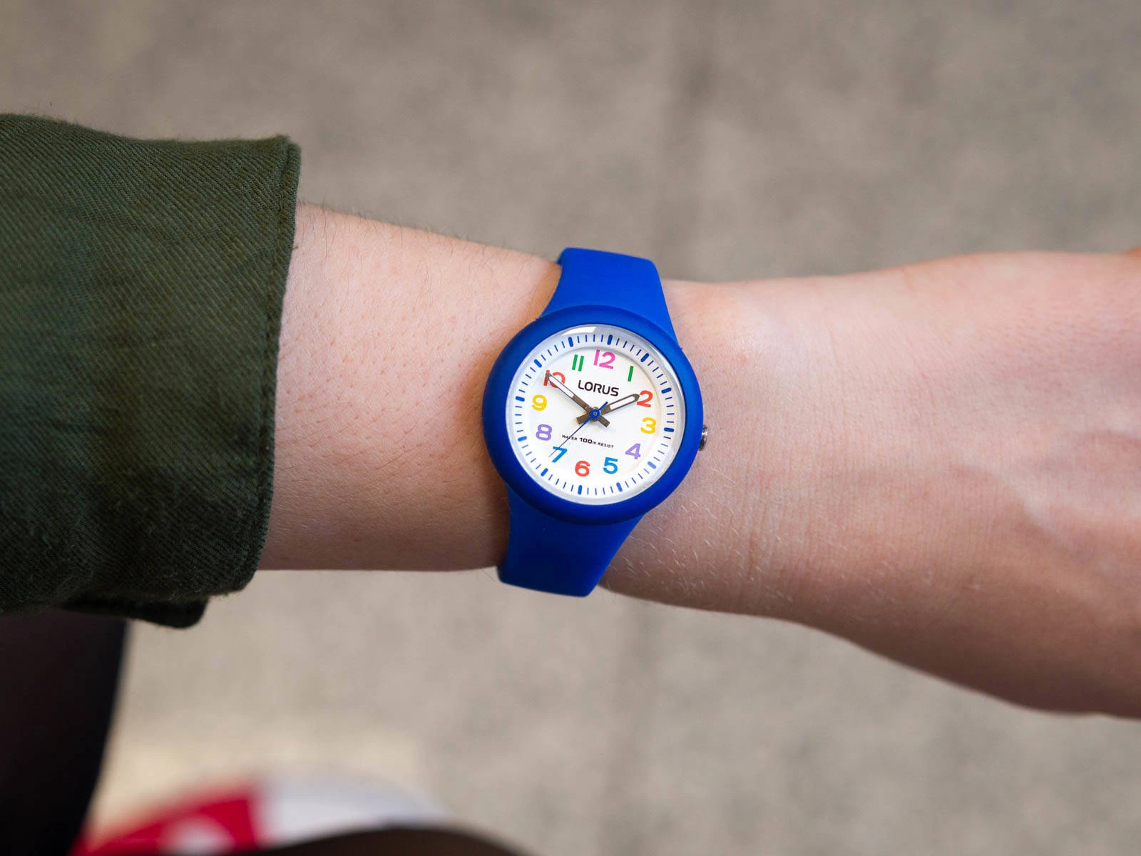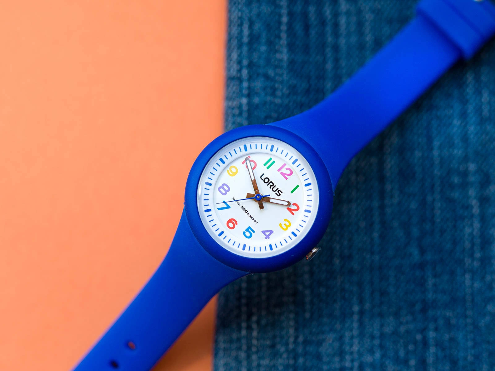- Wodoszczelny Zegarek dziecięcy Lorus RRX45EX9 niebieski na pasku, posiada funkcję neobrite.