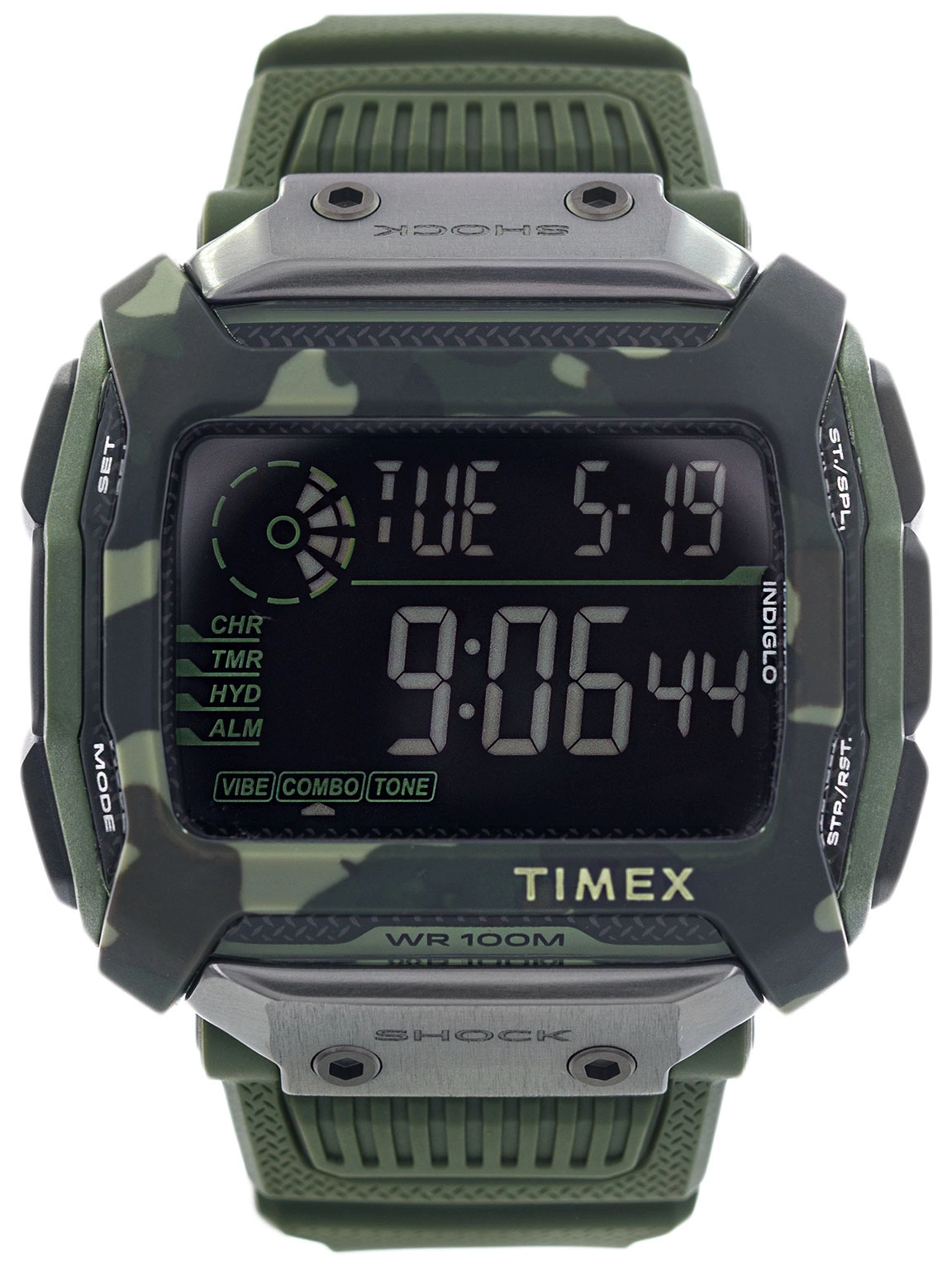Męski zegarek Timex EXPEDITION TW5M18200 THE COMMAND wzbudza podziw potężnymi rozmiarami. Na prostokątnym wyświetlaczu wskazywany jest aktualny czas oraz dzień tygodnia, miesiąc i dzień miesiąca. Zegarek Timex TW5M20400 oprócz sportowego designu, oferuje wiele przydatnych funkcji. Wykonany jest z tworzywa sztucznego, które jest lekkie przez o nosi się go wygodnie. Dodatkowo koperta wykonana jest w technologii SHOCK, która oznacza odporność na wstrząsyKlasa wodoszczelności 100M pozwala na pływanie, pamiętać należy żeby nie wciskać przycisków pod wodą. Możliwość ustawienia 3 niezależnych alarmów, dodatkowo specjalny alarm hydracyjny, który przypomina o nawodnieniu. Stoper i timer sprawdzą się podczas treningu. Odczyt informacji z wyświetlacza będzie ułatwiony dzięki podświetleniu indiglo