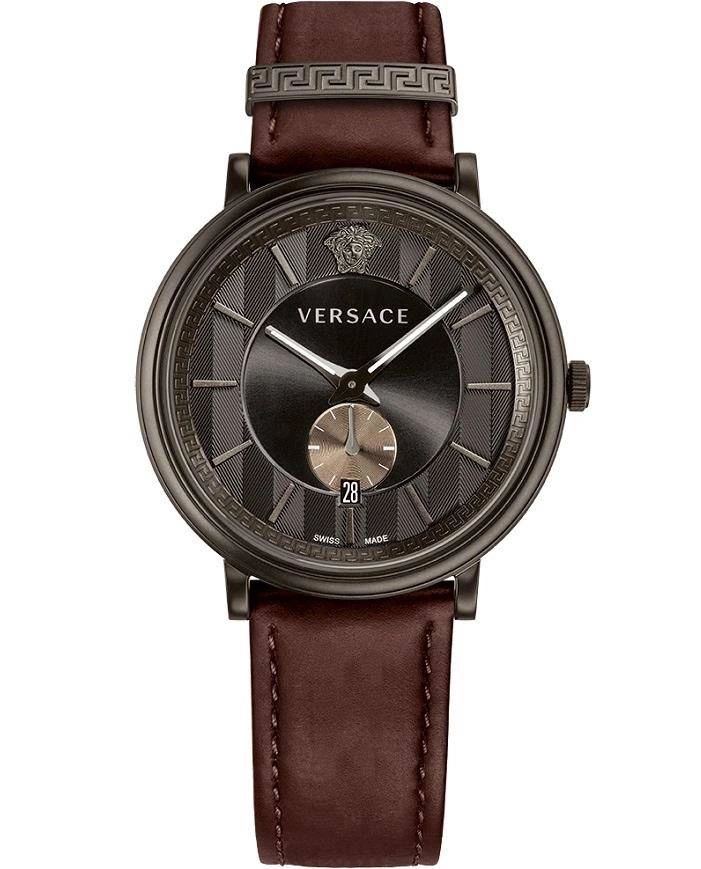 • Zegarek Męski Versace VEBQ00419 Brązowy na pasku, posiada funkcję datownika