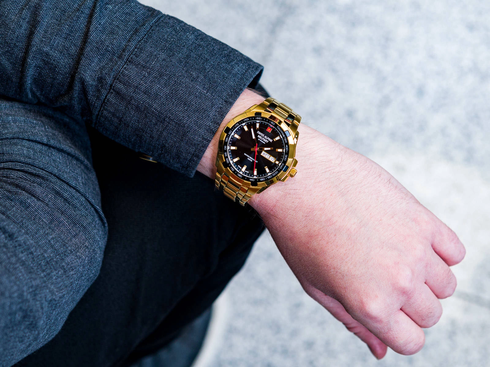 Swiss Alpine MilitarySAM7043.1117 to model o tradycyjnym designie łączącym elegancje z funkcjonalnością. Zegarek ten został wyposażony w rozbudowany datownik, który wskazuje dzień tygodnia i miesiąca. Sercem czasomierza jest szwajcarski mechanizm kwarcowy Ronda 5030.D, słynący z niezwykłej dokładności. Kontrastująca czarna tarcza pozwala na swobodny odczyt godziny w każdych warunkach. Koperta i bransoleta koloru złotego są wykonane z wysokiej jakości stali szlachetnej, która nie powoduje alergii, ponieważ nie zawiera niklu. Klasa wodoszczelności 10ATM pozwala na pływanie z zegarkiem. Należy jednak pamiętać, aby koronka była dociśnięta. Produkt europejskiej marki Swiss Alpine Military jest idealnym rozwiązaniem, gdy szukasz godnego zaufania, praktycznego i nowoczesnego zegarka.