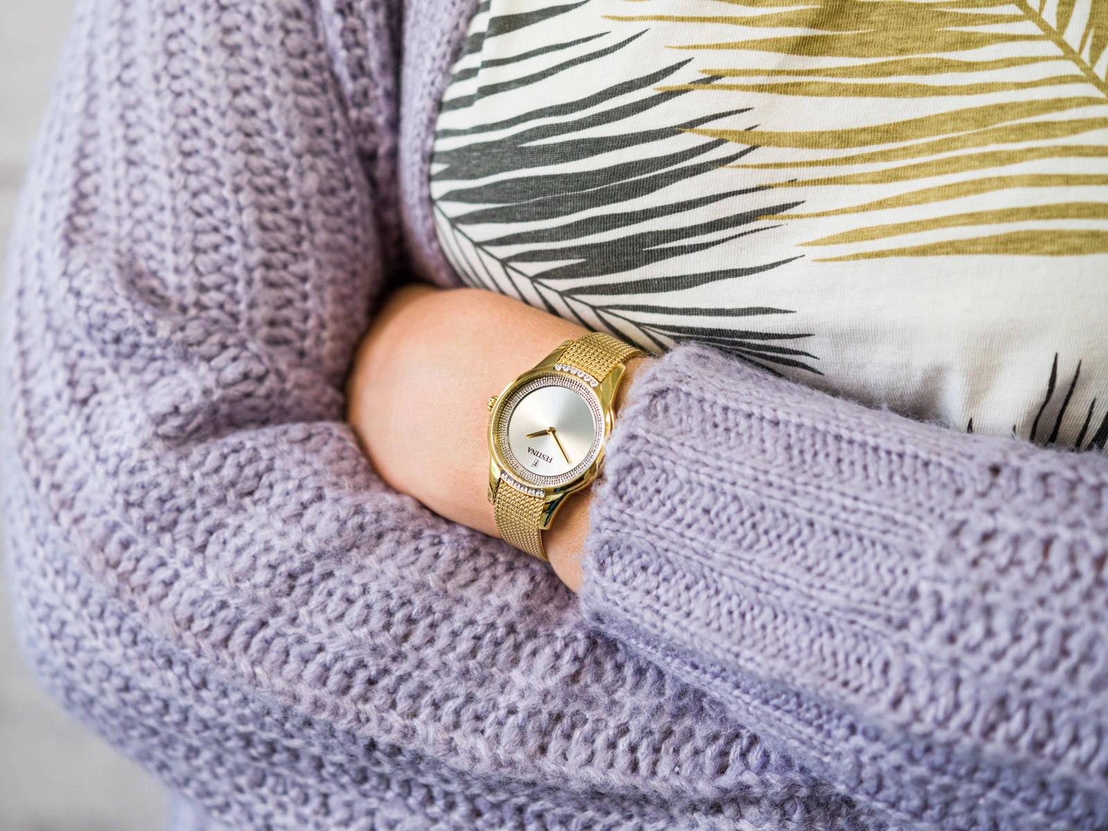 Festina F20495/1 Swarovski to propozycja dla Pań ceniących modne dodatki. Na złotej kopercie oraz wkoło tarczy umieszczono kryształki Swarovski, przez co zegarek prezentuje się znakomicie. Bransoleta mesh wykonana ze stali szlachetnej odpornej na korozje doskonale dopasowuje się do nadgarstka. Samodzielnie można dostosować obwód, bez konieczności wizyty u zegarmistrza. Warto zaznaczyć, że zegarek pracuje dzięki mechanizmowi kwarcowemu, który zasilany jest baterią. Tradycyjna kolorystyka czasomierza sprawia, że jest on w swojej prostej formie bardzo stylowy. W zestawie dołączone jest dedykowane pudełko producenta, które może pełnić role opakowania na prezent.