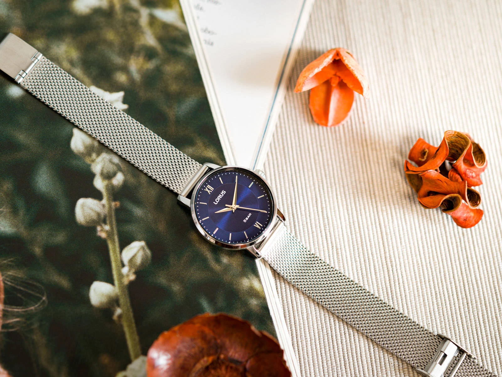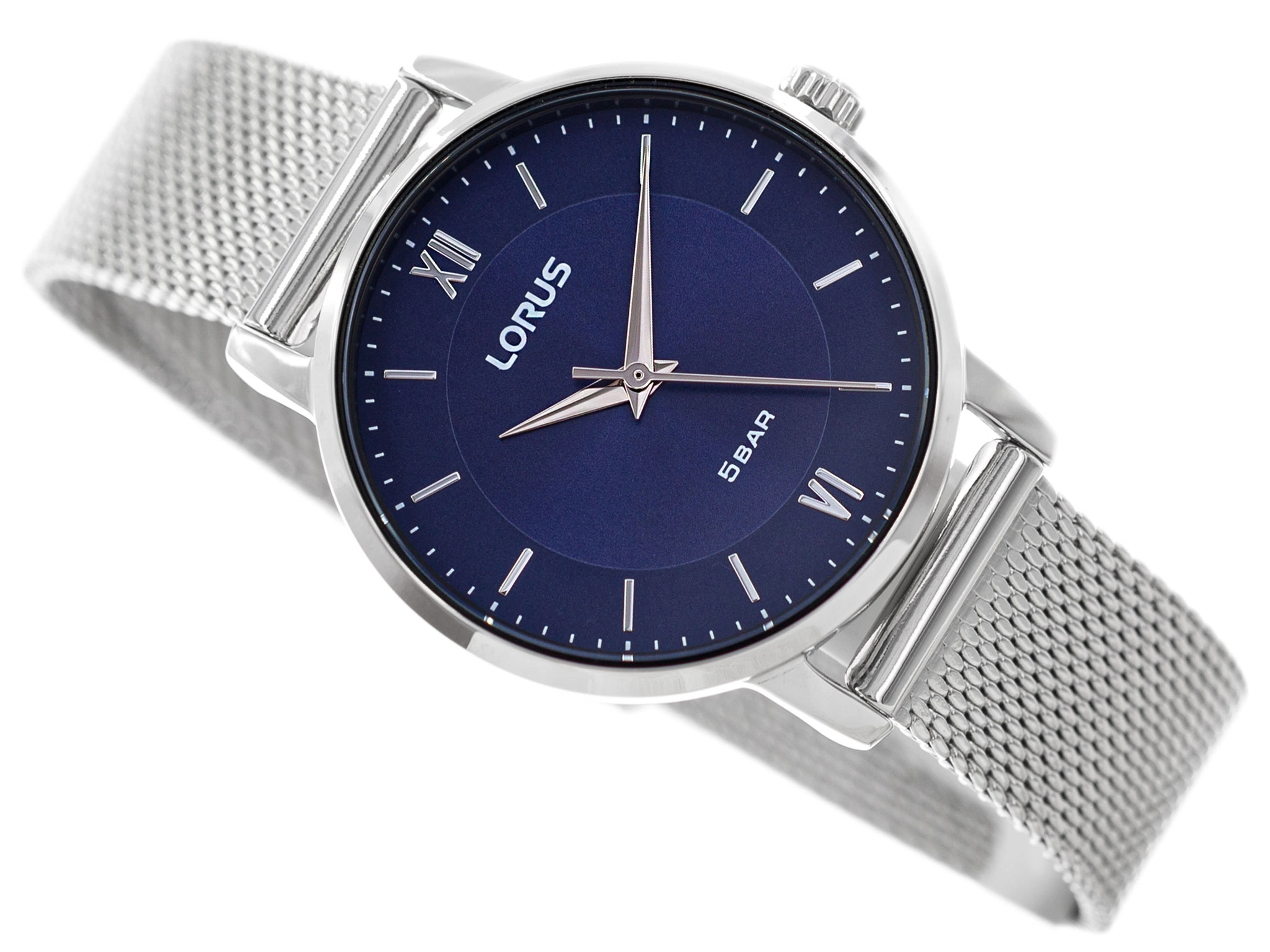 - Wodoszczelny Zegarek Damski Lorus RG279TX9 srebrny na bransolecie typu mesh.