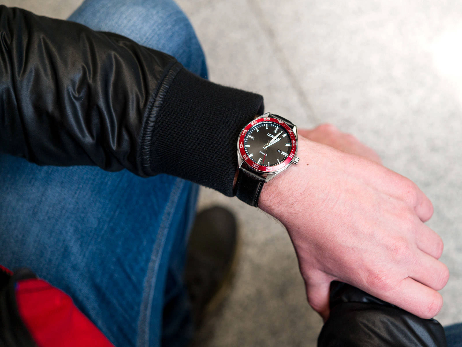 - Wodoszczelny Zegarek Męski Lorus RH941NX9 czarny na pasku, posiada funkcję datownika.