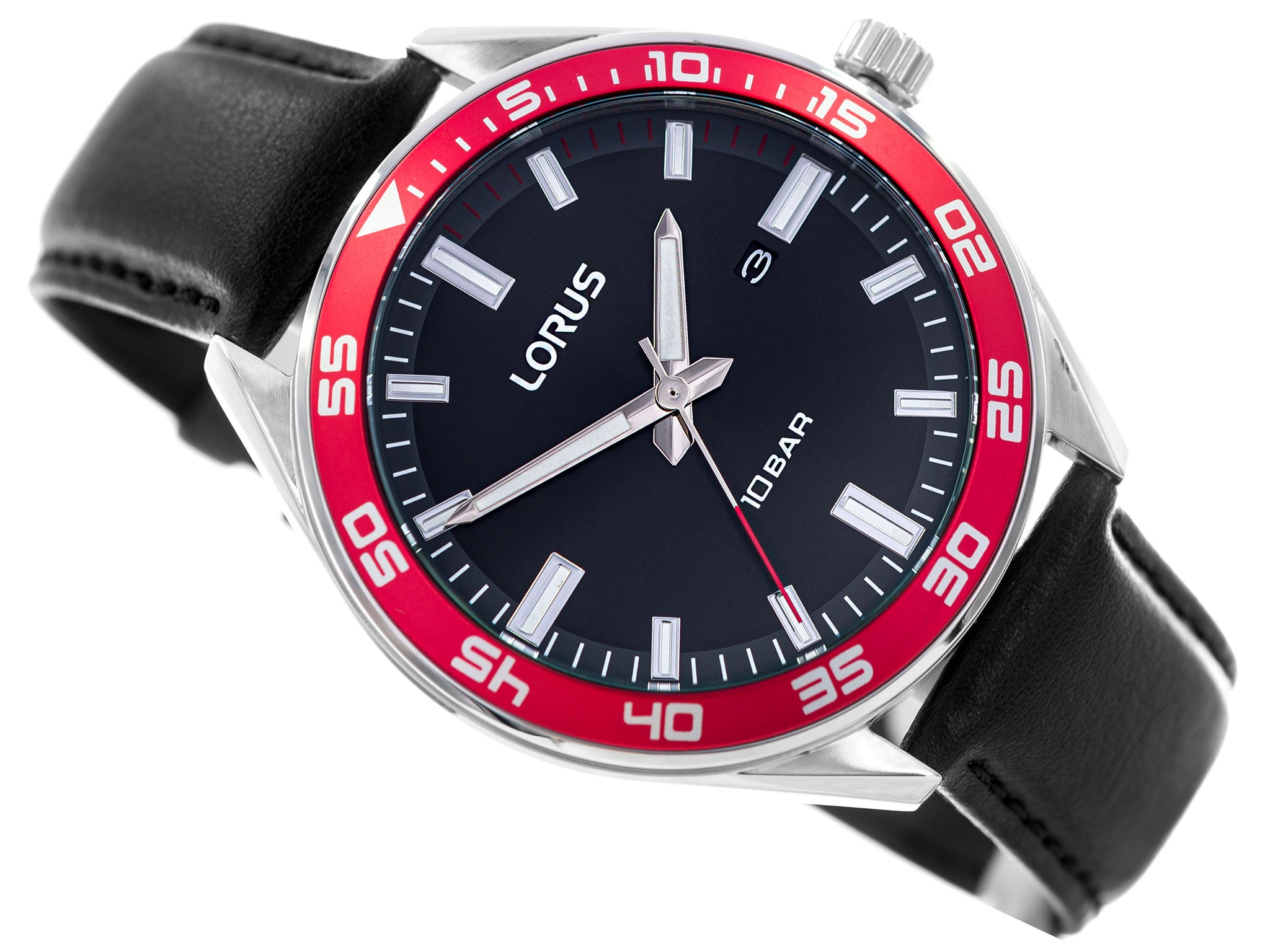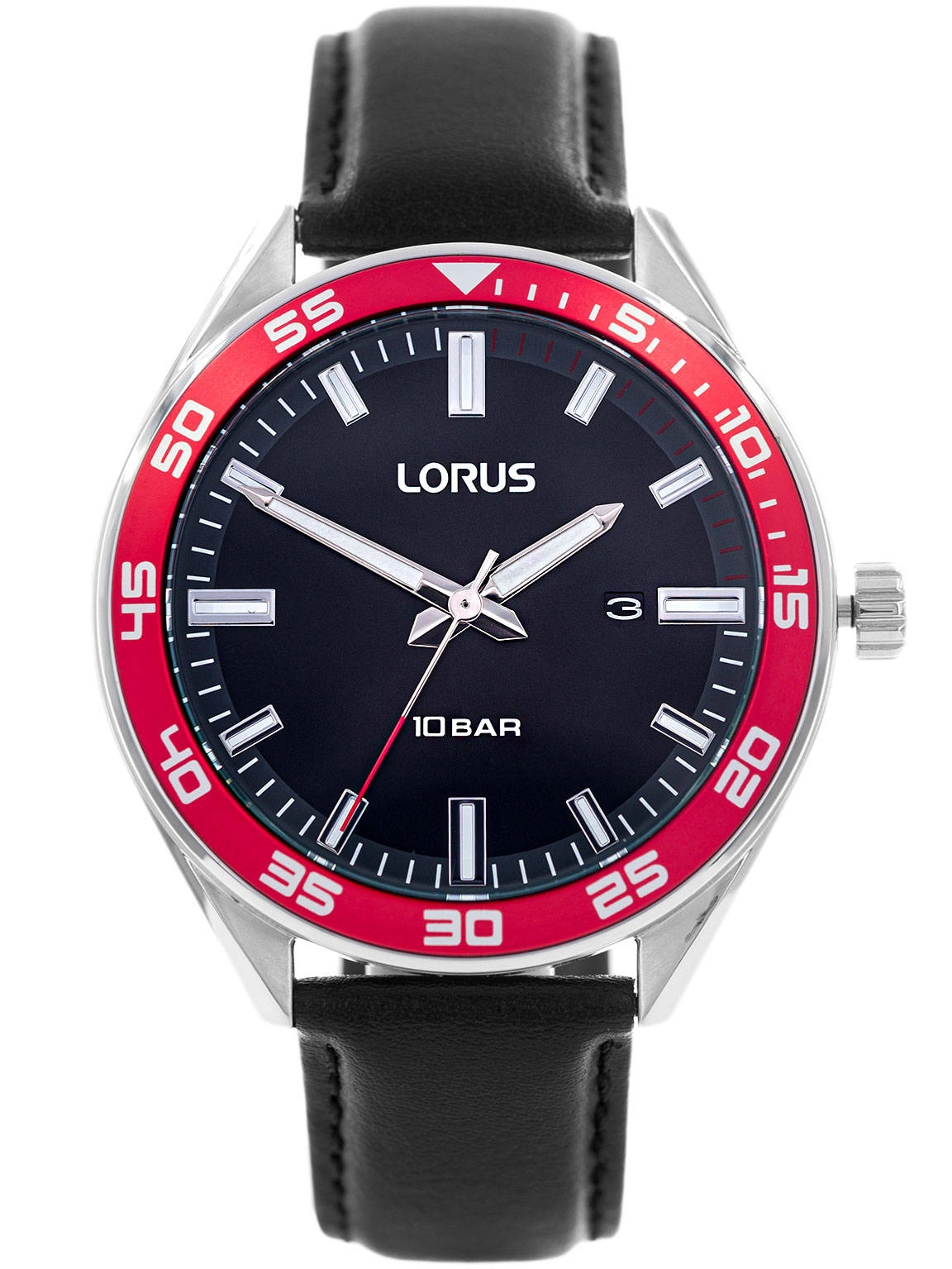 Lorus RH941NX9 przeznaczony jest dla zwolenników klasyki. Napędzany jest przez japoński mechanizm kwarcowy, który uważany jest za niezwykle dokładny. Srebrna, błyszcząca koperta zawieszona została na czarnym pasku wykonanym ze skóry. Na czarnej tarczy umieszczono czytelne pionowe indeksy, a przy godzinie 3 znajduje się datownik, wskazujący dzień miesiąca. Czerwona obręcz umieszczona wokół cyferblatu nadaje zegarkowi charakteru. Lorus RH941NX9 to funkcjonalny model o eleganckim wyglądzie, który znakomicie prezentuje się na męskim nadgarstku. Gustowne pudełko dołączone do tego modelu sprawia, że zegarek może stać się idealnym pomysłem na prezent.
