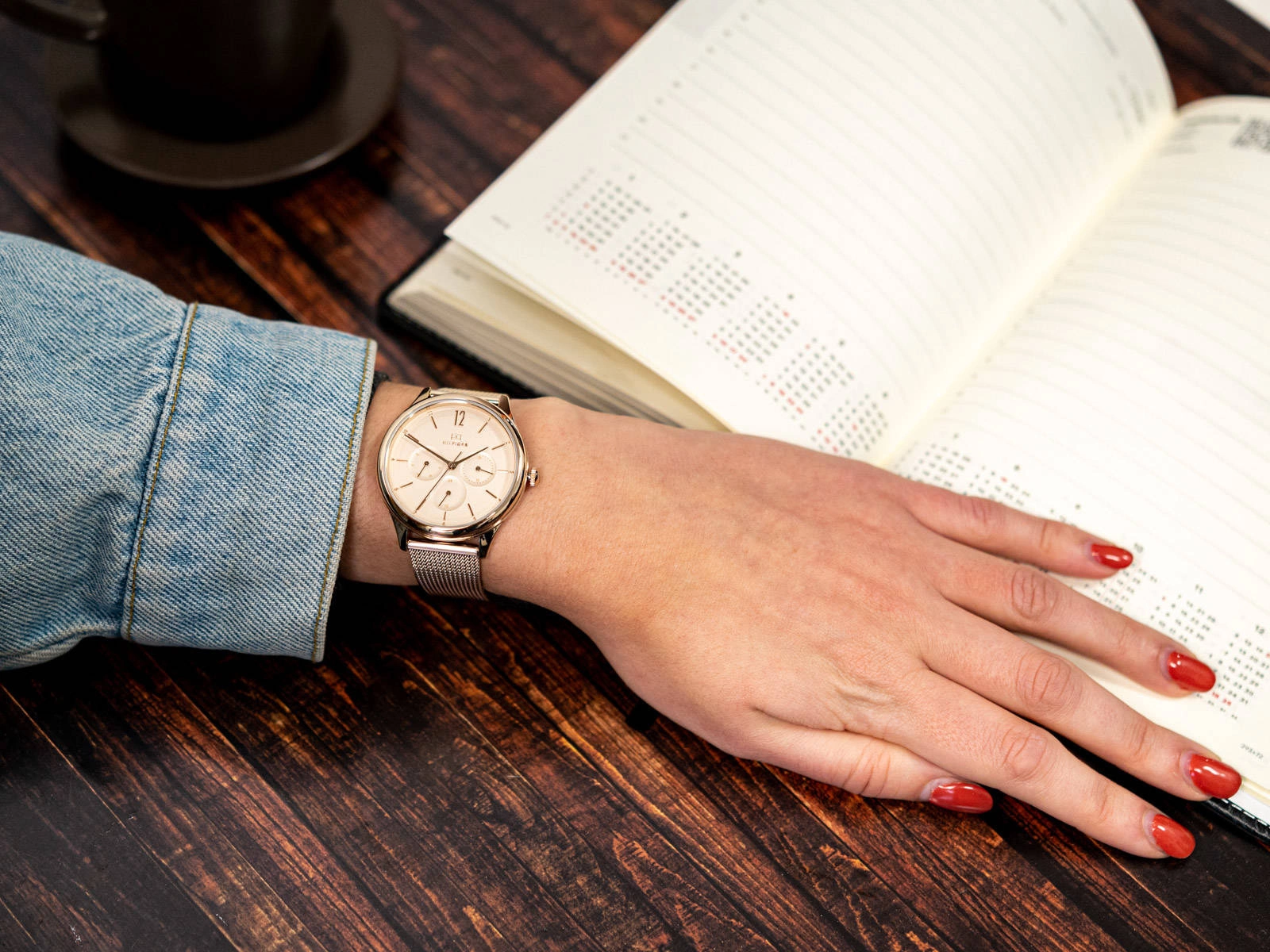 Tommy Hilfiger Layla 1782457 to propozycja casualowego zegarka dla pań. Lśniąca koperta została połączona ze stalową bransoletą w kolorze różowego złota. Bransoletę typu mesh można samodzielnie dopasować bez konieczności wizyty u zegarmistrza. Na tarczy w kolorze różowego złota znajdziemy rozbudowany datownik wskazujący dzień tygodnia, dzień miesiąca i zegar 24-godzinny. Produkt ma mechanizm kwarcowy, który jest zasilany wymienną baterią. Zastosowane modnego koloru rose gold sprawi, że będzie pasował do każdej, codziennej stylizacji. Czasomierz tego typu może być świetną alternatywą zamiast biżuterii lub może być jej uzupełnieniem. Eleganckie pudełko dołączone do tego modelu sprawia, że zegarek może stać się idealnym pomysłem na prezent.