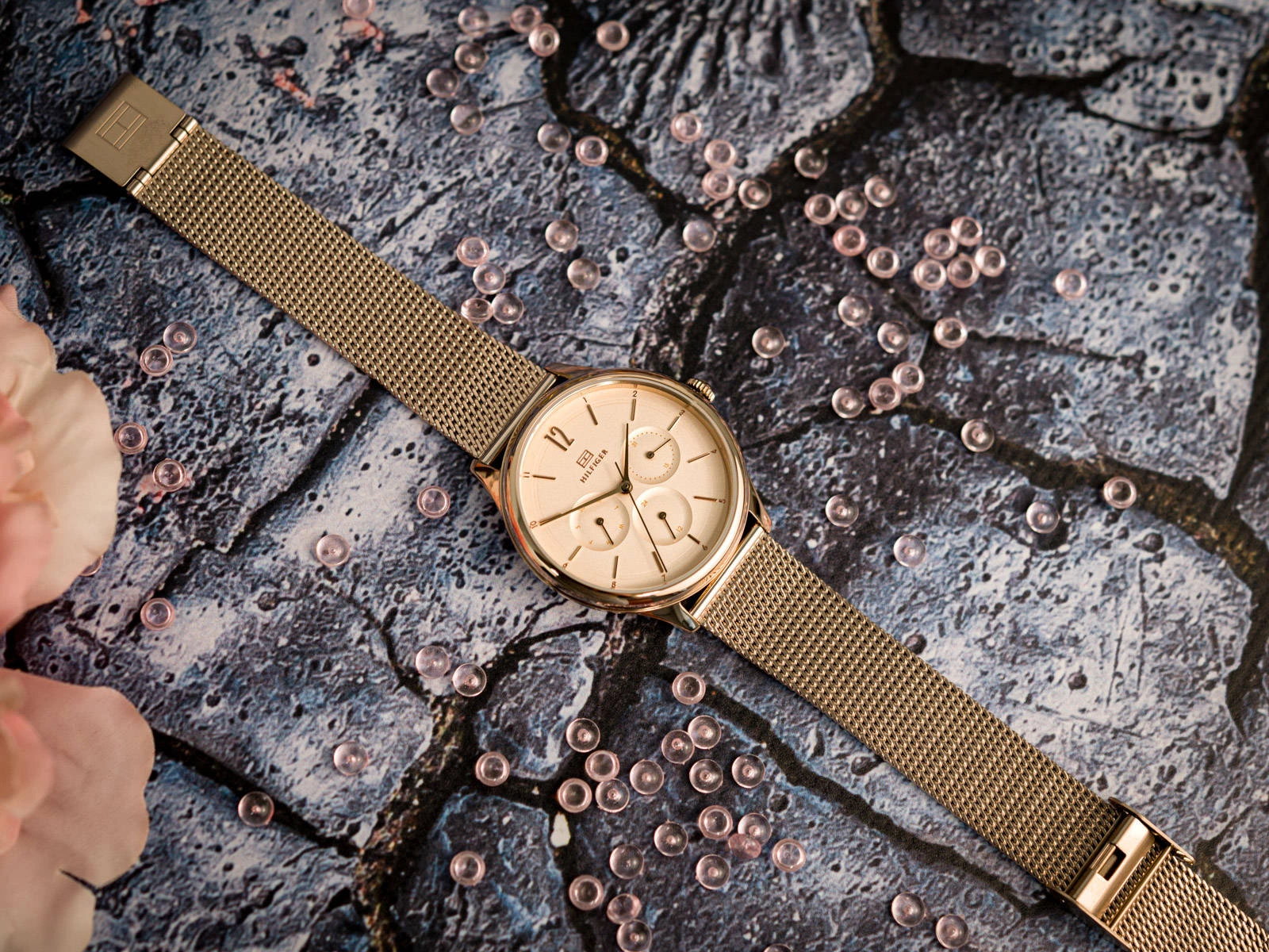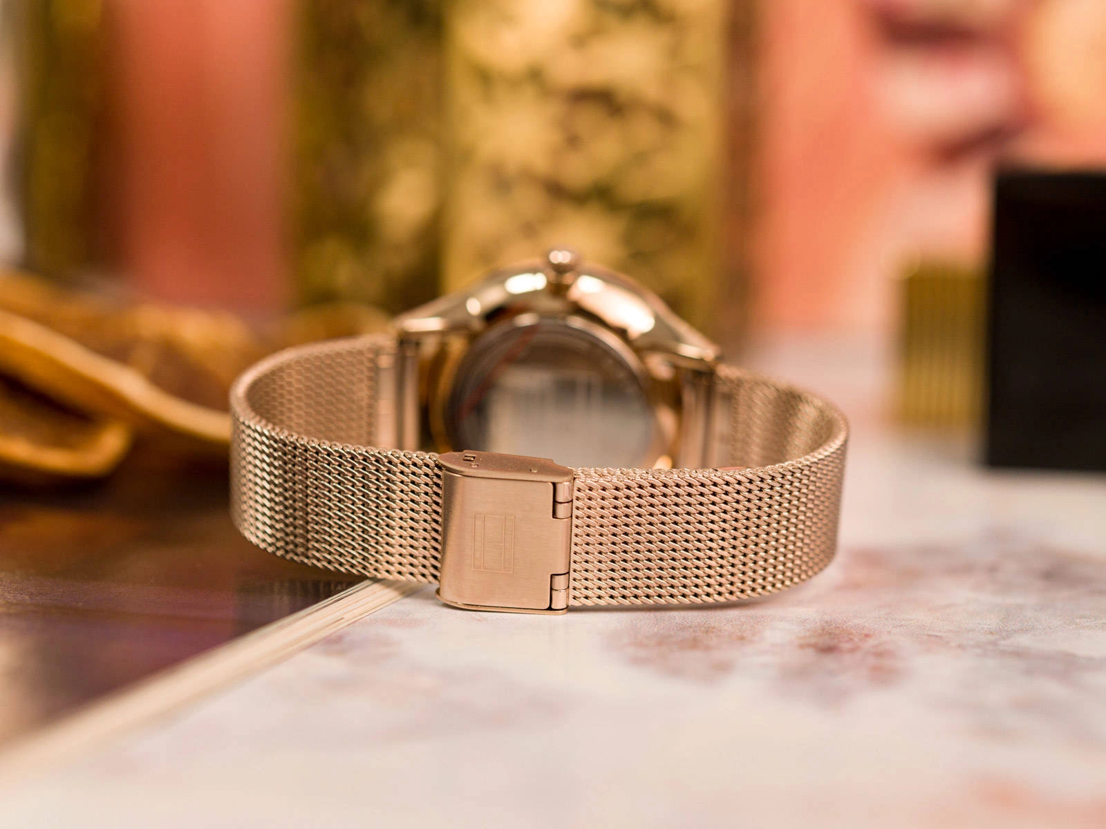 - Zegarek Damski Tommy Hilfiger 1782457 czerwone złoto na bransolecie, posiada funkcję datownika.