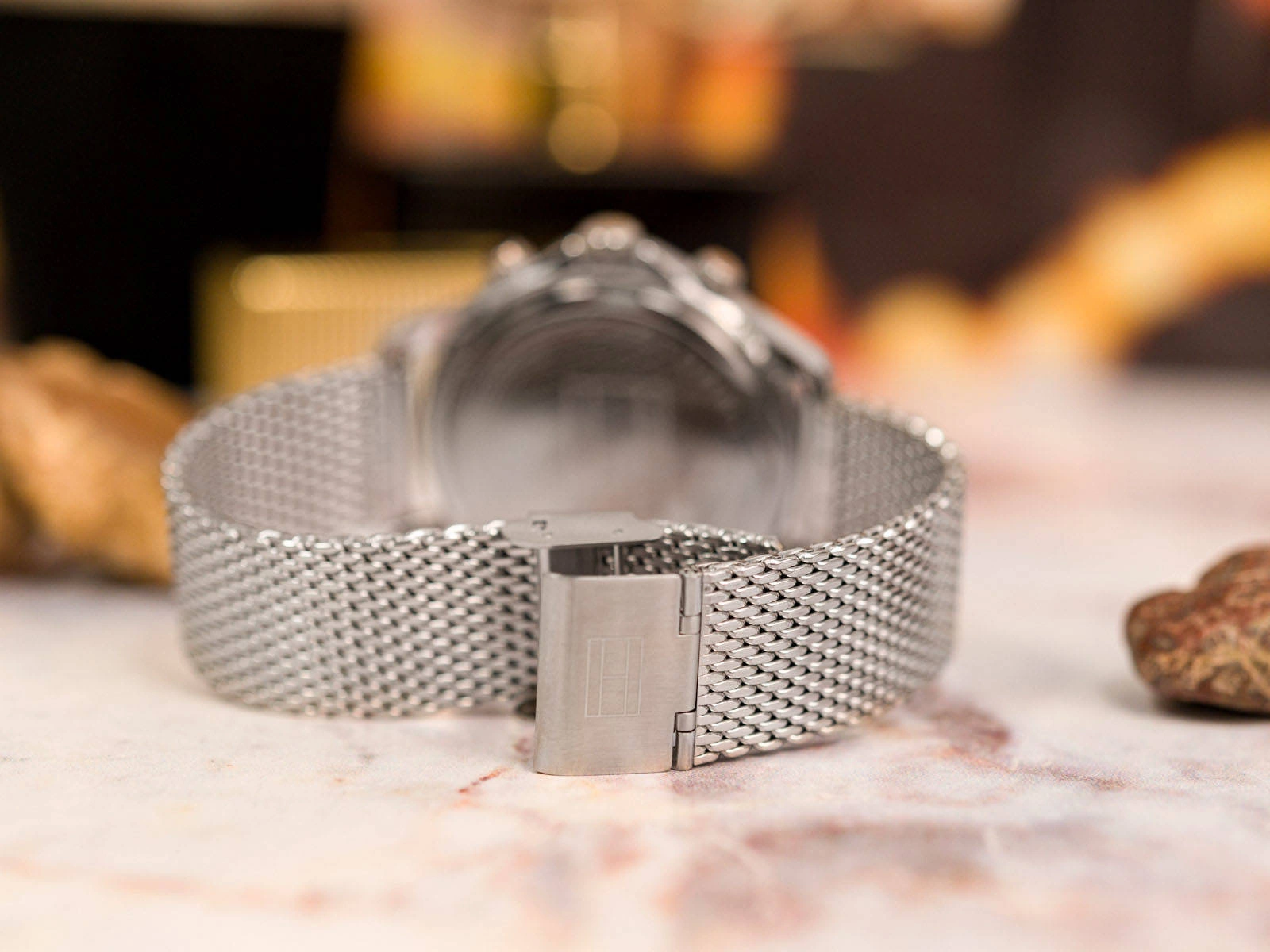 • Zegarek Męski Tommy Hilfiger 1792018 srebrny na bransolecie posiada funkcję dual-time.