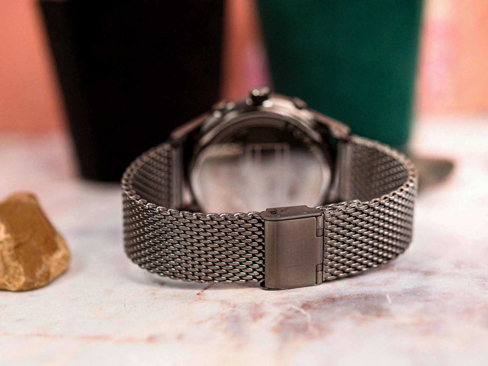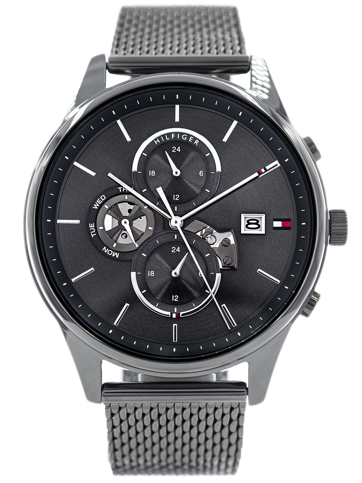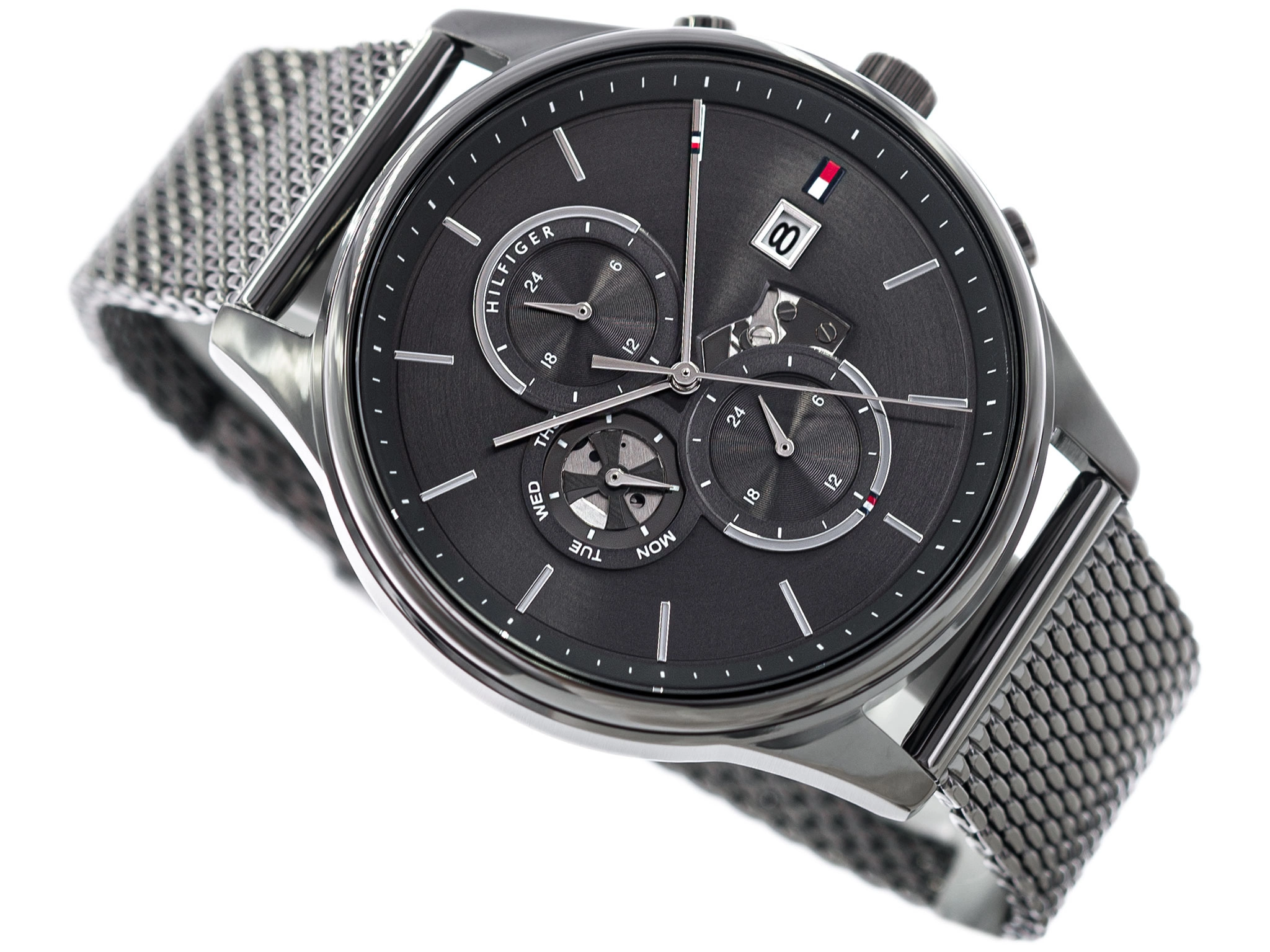 • Zegarek Męski Tommy Hilfiger 1710506 grafitowy na bransolecie, posiada funkcję datownika.