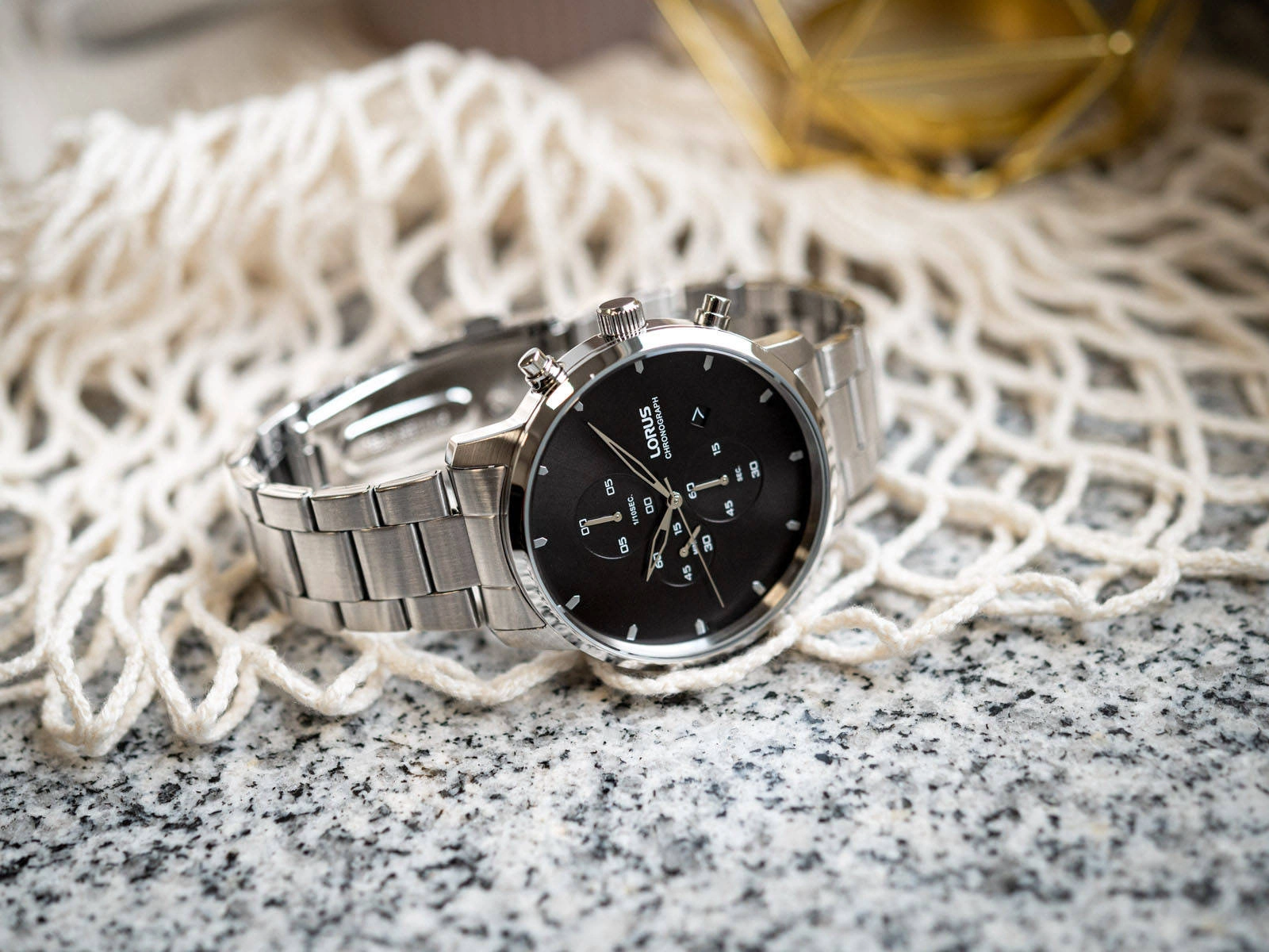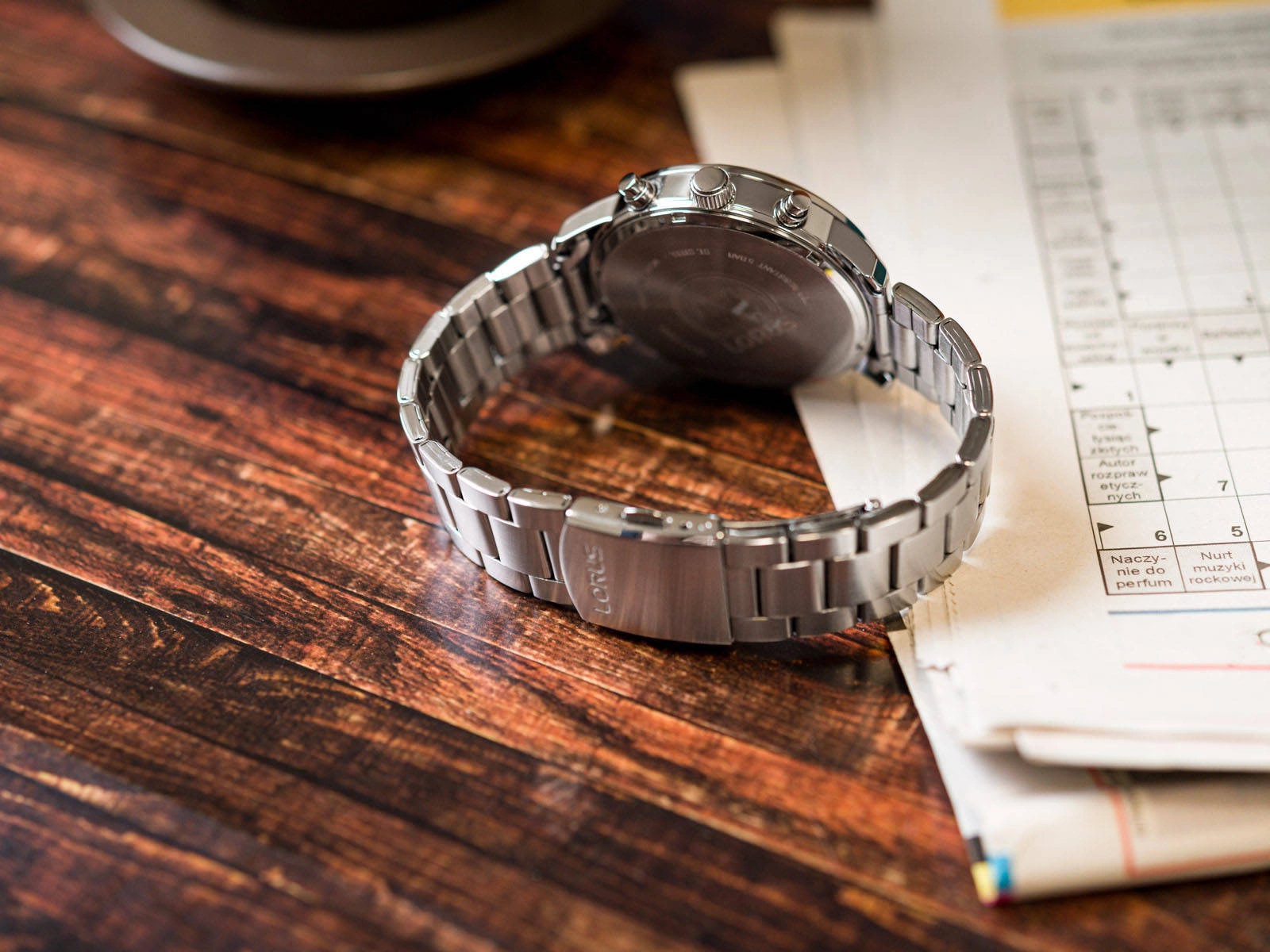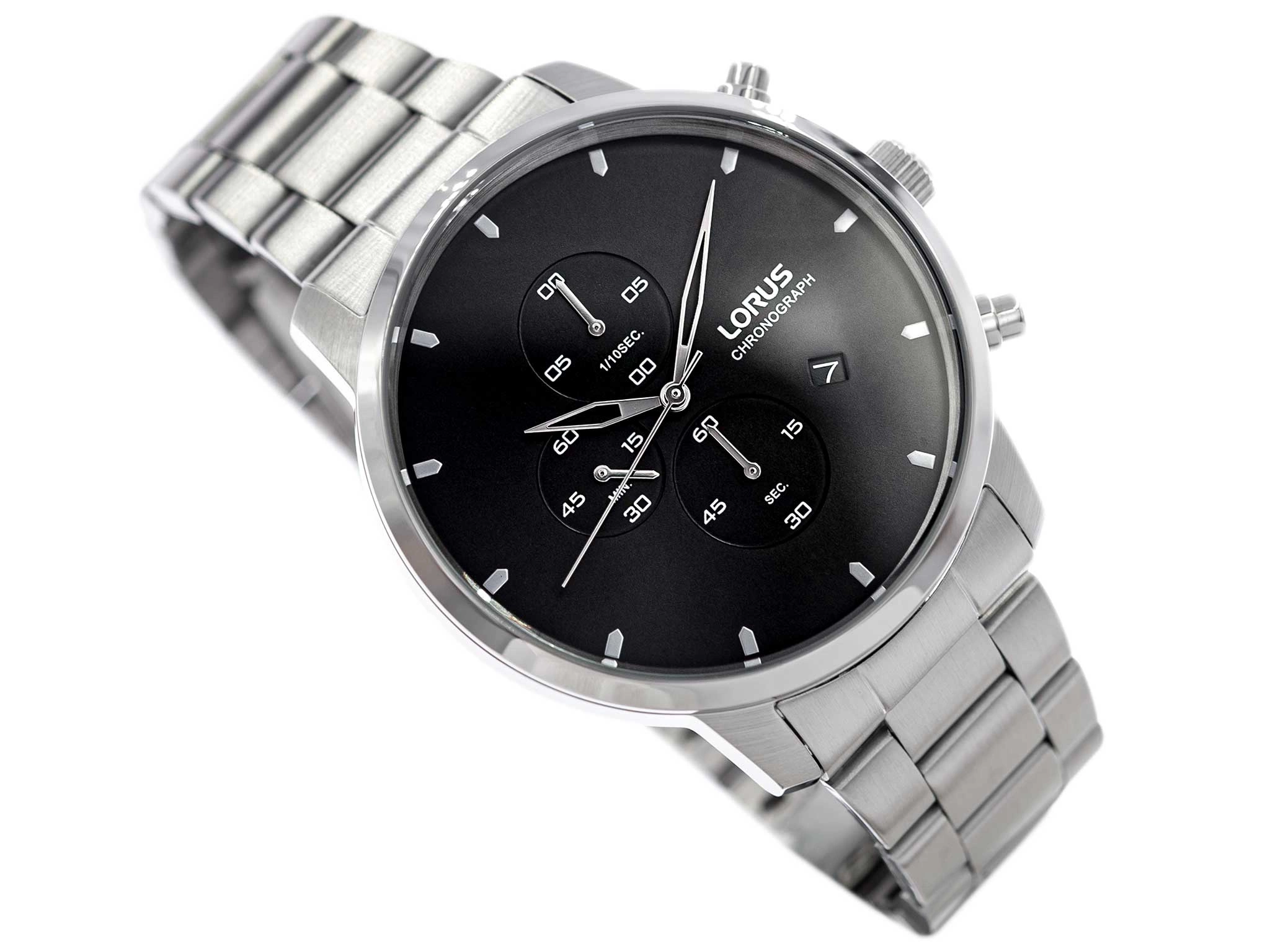 - Zegarek Męski Lorus RM357EX9 srebrny na bransolecie, posiada funkcję stopera.