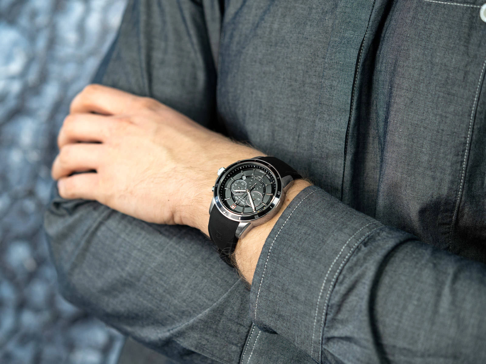 - Wodoszczelny Zegarek Męski Swiss Alpine Military SAM7089.9837 czarny na pasku, posiada funkcje takie jak stoper i datownik.