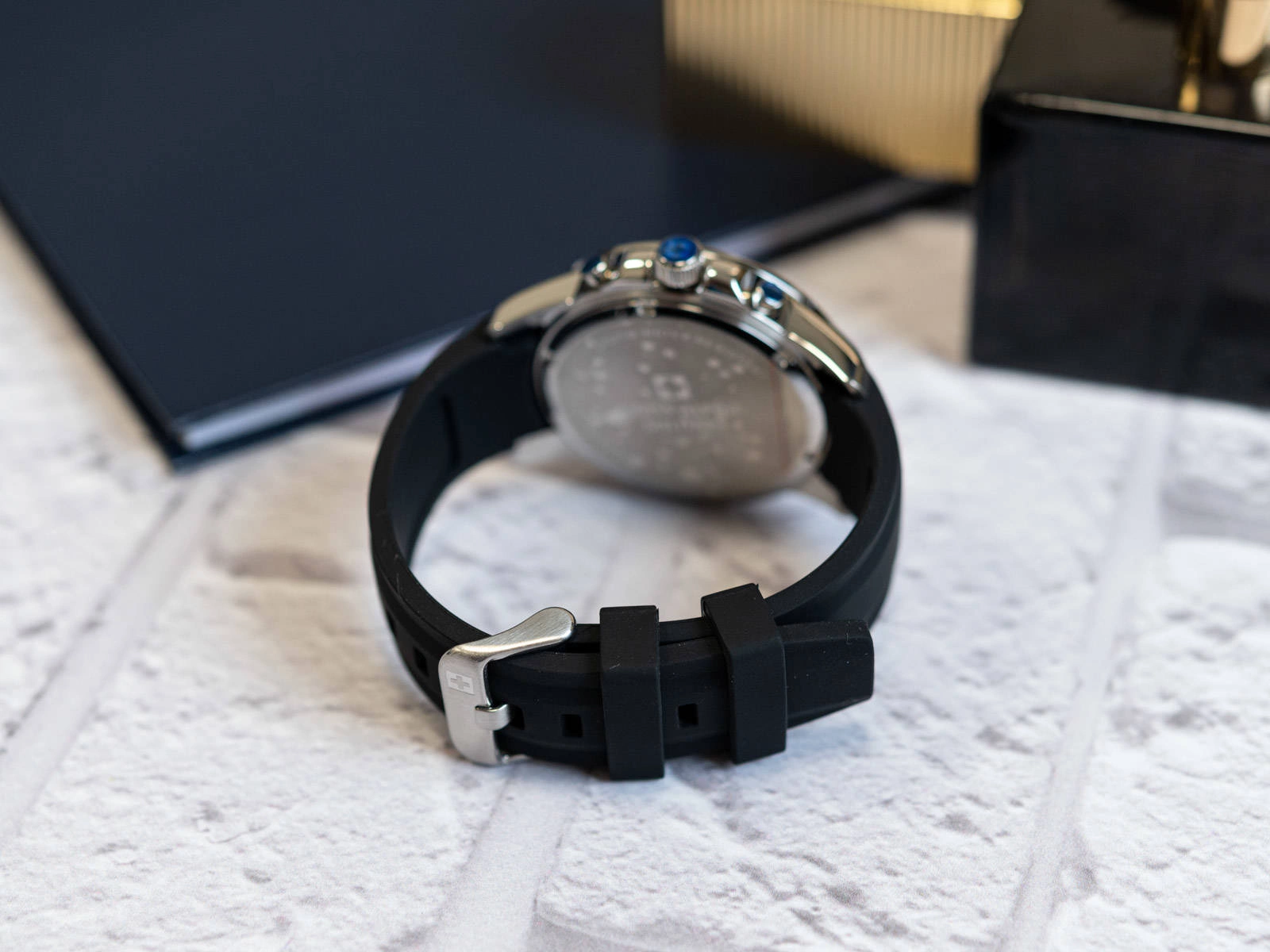 - Mechanizm: kwarcowy, zasilany baterią, Swiss Made Ronda 5030.D