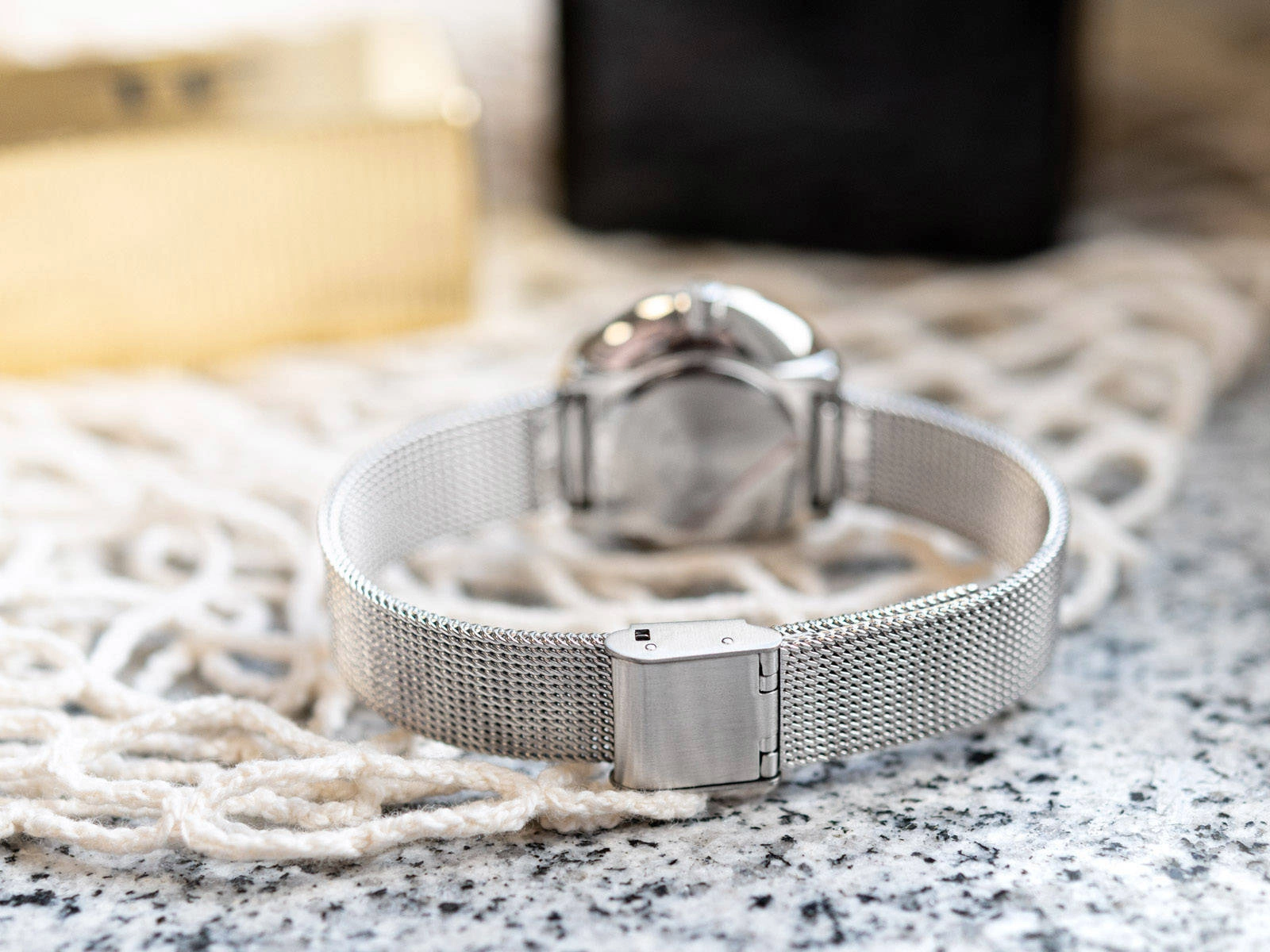 - Zegarek Damski Lorus RG257QX9 srebrny na bransolecie typu mesh.
