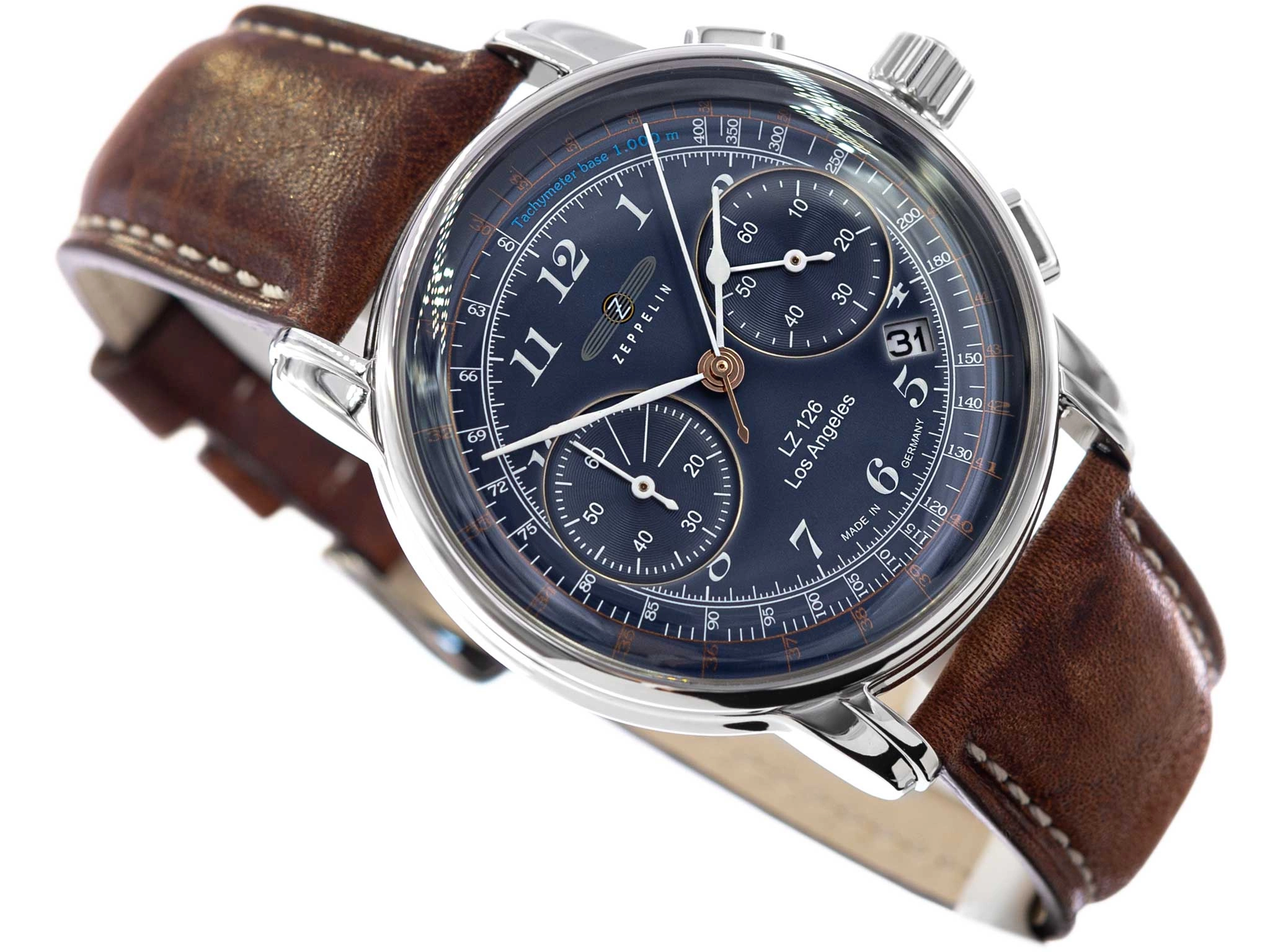 • Zegarek Męski Zeppelin 7614-3 brązowy na pasku, posiada funkcje takie jak stoper i datownik.