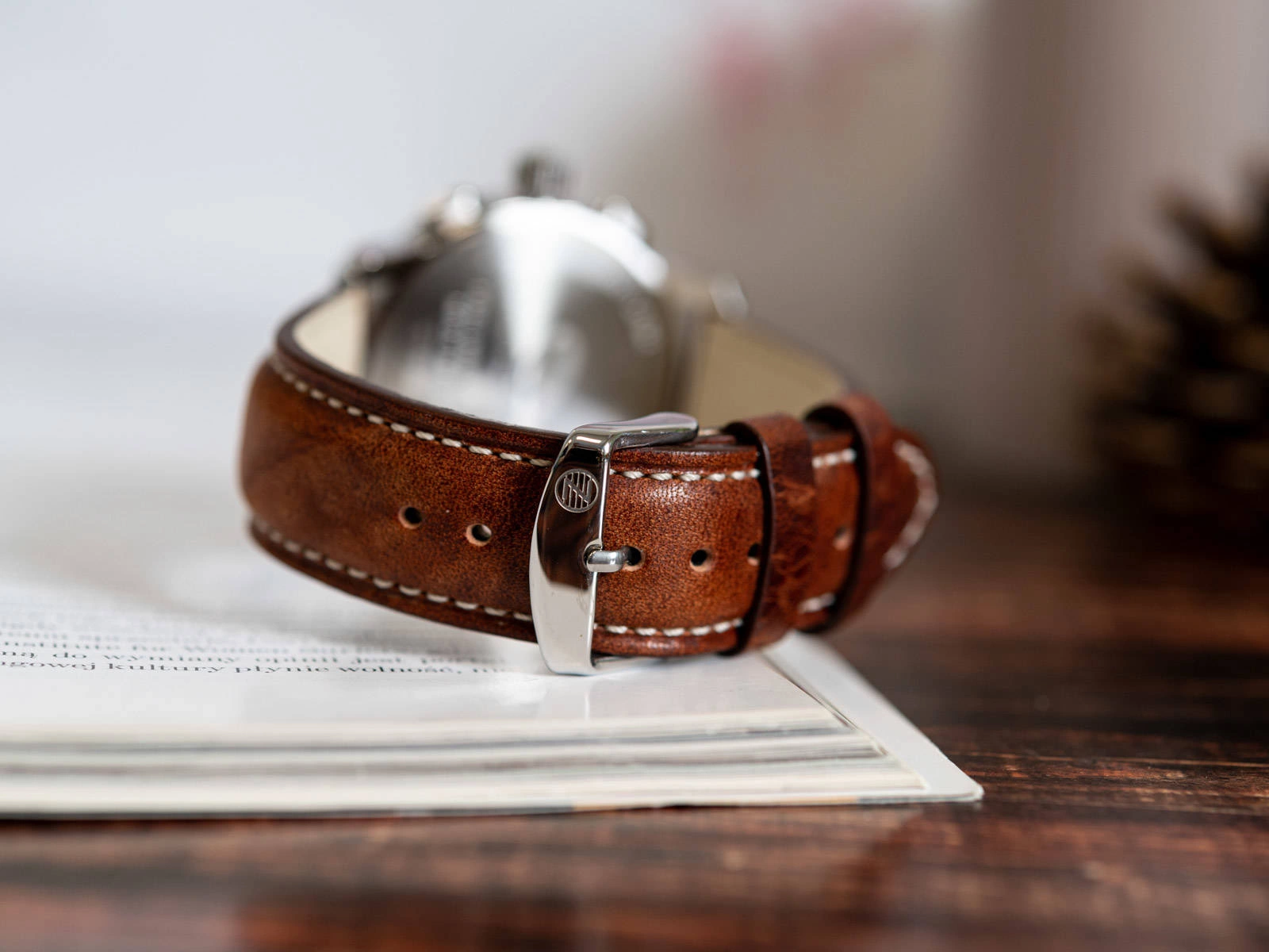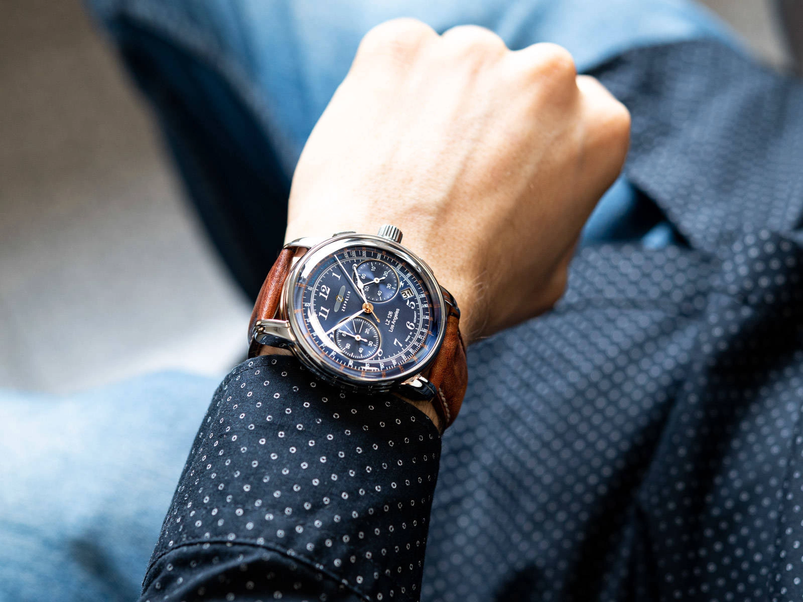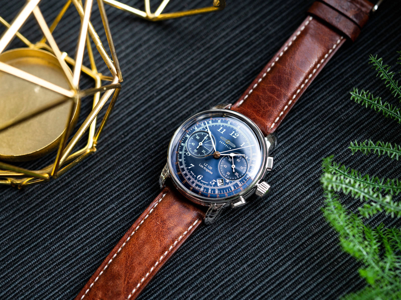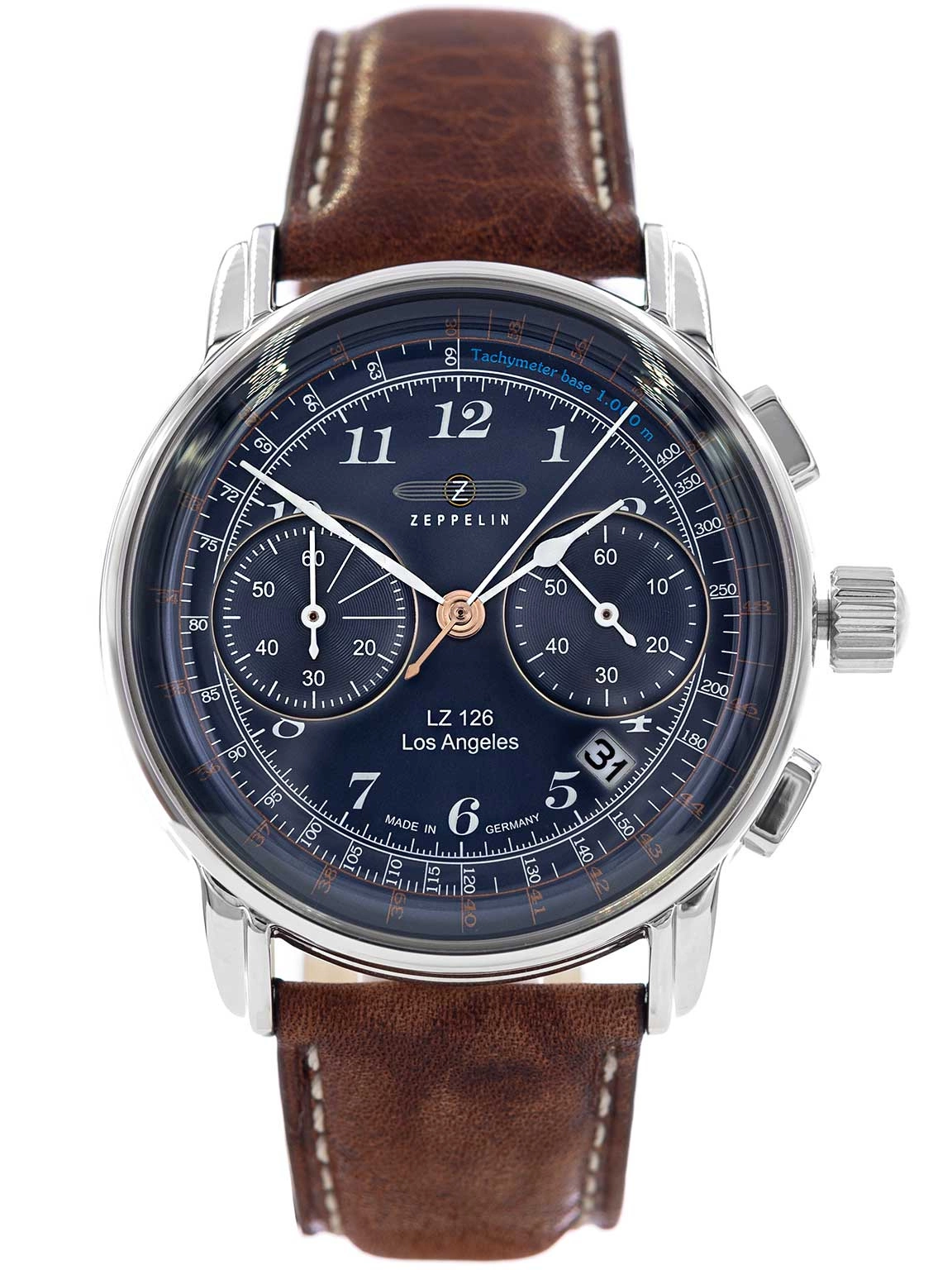 Znaki rozpoznawcze modelu ZEPPELIN LZ126 7614-3 to solidne wykonanie i elegancki design. Produkt napędzany jest przez precyzyjny mechanizm kwarcowy Cal. 6S21. Wypukłe mineralne szkiełko, chroni granatową tarczę, która została wyposażona w wiele przydatnych funkcji. Aktualny dzień miesiąca wskaże nam datownik umieszczony w okienku pomiędzy godziną 4, a 5. Producent wyposażył czasomierz w stoper analogowy, który obsługuje się za pomocą bocznych przycisków. Warto dodać, że pomiar czasu możliwy jest aż do 60 minut. Połączenie brązowego paska ze skóry naturalnej z granatową tarczą nadaje zegarkowi indywidualnego charakteru. ZEPPELIN LZ126 7614-3 to czasomierz wysokiej klasy, świadczą o tym jakościowe i komponenty i sumienne wykończenie. Producent to tego modelu załączył eleganckie pudełko, co czyni ten produkt idealnym pomysłem na prezent.