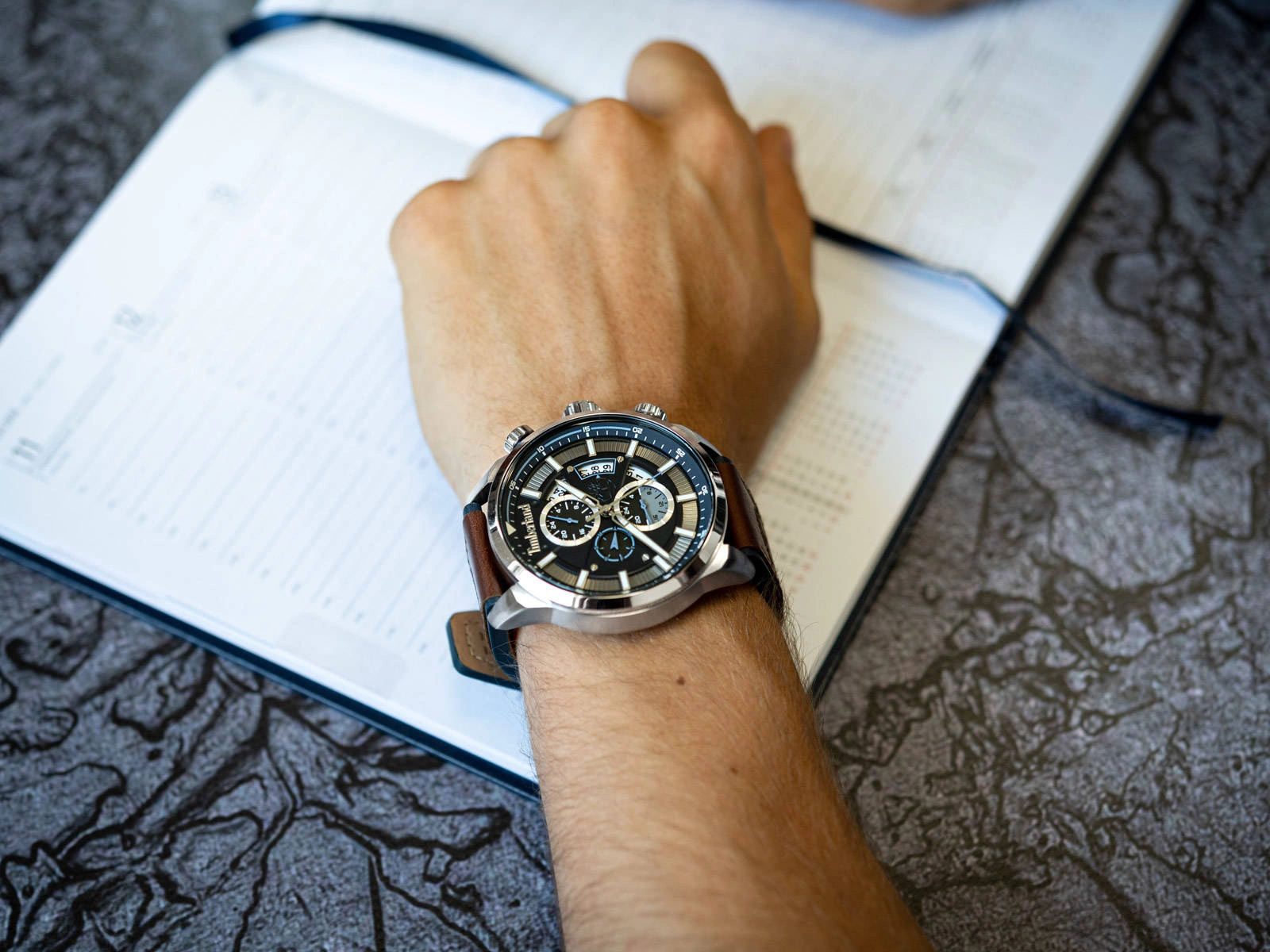 - Zegarek Męski Timberland TBL.TDWGF2102602 brązowy na pasku, posiada funkcję rozbudowanego datownika oraz dual-time.