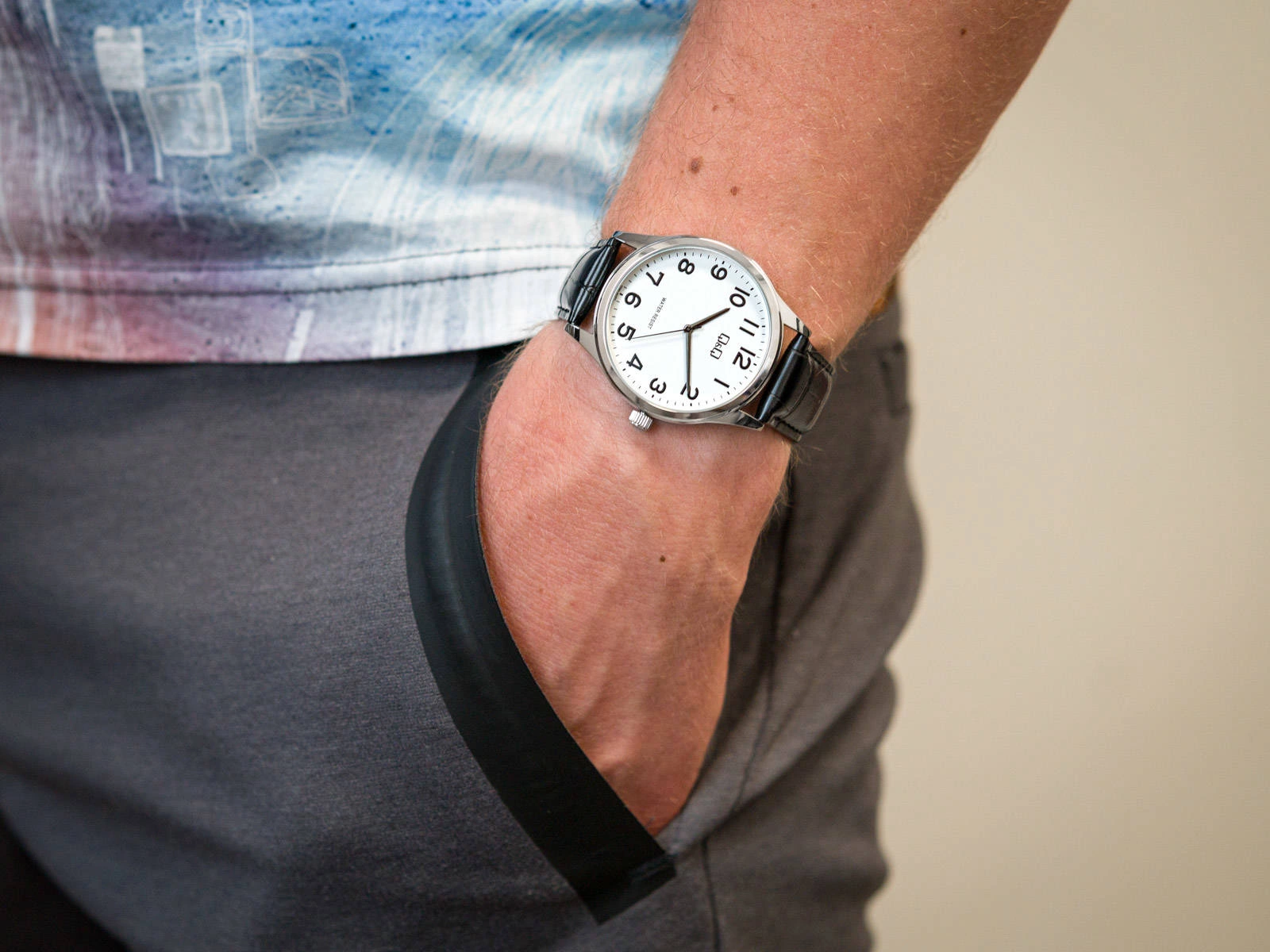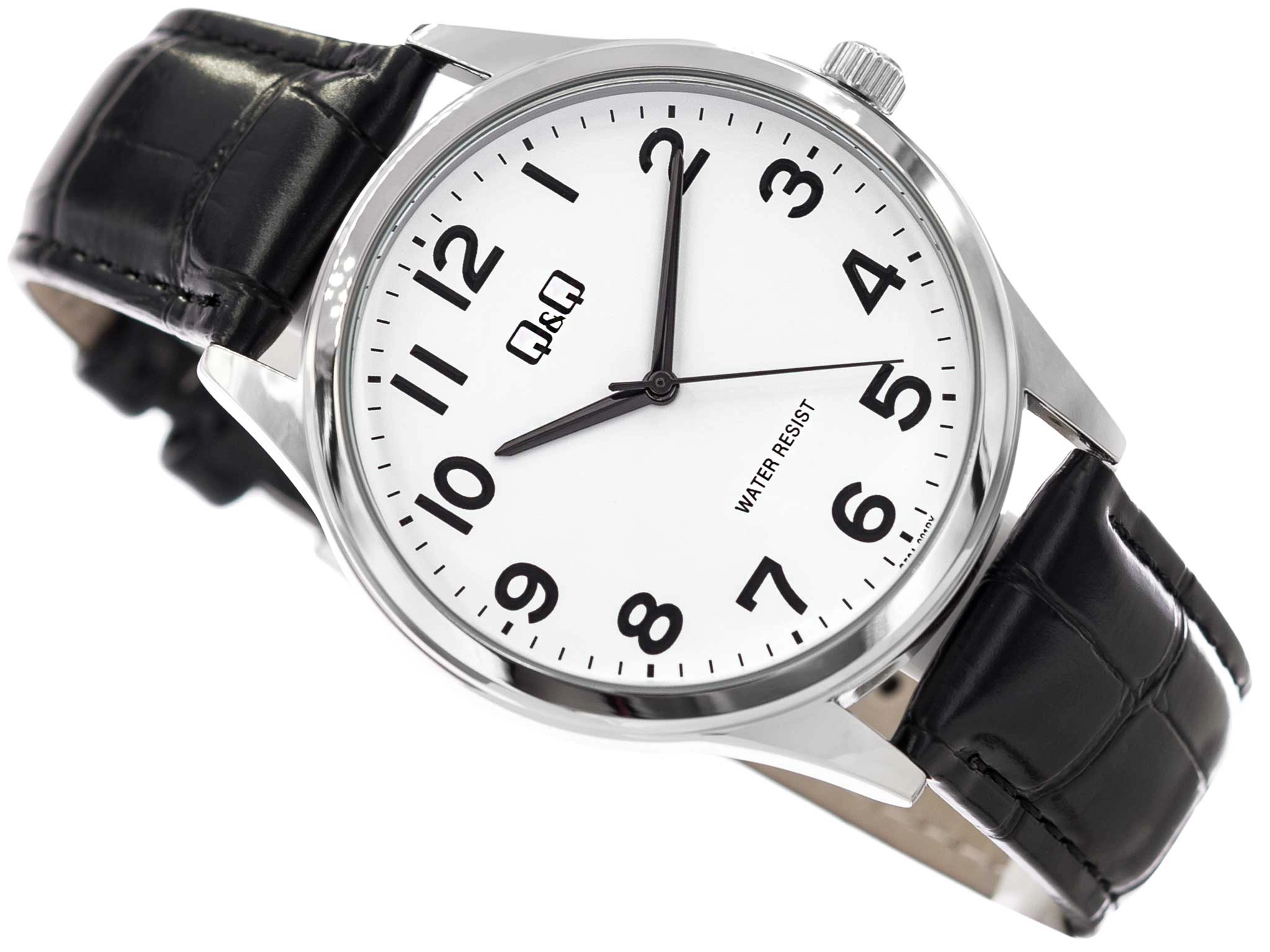 Q&Q Q59A-001PY to produkt zaprojektowany dla fanów minimalizmu. Czarny pasek wykonany ze eko-skóry, po pewnym czasie idealnie dopasuje się do nadgarstka. Na białym cyferblacie umieszczono wyraźne kontrastujące indeksy w postaci cyfr arabskich. Tarcza prezentuje się klarownie, a szybki odczyt godziny nie powinien sprawić problemu, nawet osobom z nieco słabszym wzrokiem. Szkło mineralne odporne na zarysowania, ochrania cyferblat. Produkt działa w oparciu o japoński mechanizm kwarcowy z wymienną baterią. Model Q&Q Q59A-001PY za sprawą stonowanej kolorystyki i klasycznego designu znakomicie prezentuje się na męskim nadgarstku i z powodzeniem może być dodatkiem do garderoby na co dzień, jak również na specjalne okazje.