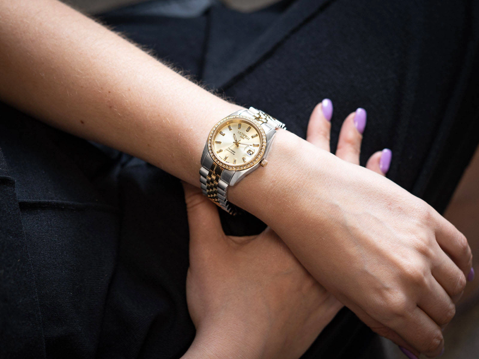 Roamer 853858 47 39 20 Positano wspaniale prezentuje się na kobiecej dłoni. Połączenie żółtego złota z klasycznym srebrem doskonale wpisuje się we wzorce ponadczasowych trendów. Dwukolorowa bransoleta zakończona została zapięciem motylkowym, które uchodzi za komfortowe w użyciu. Na kopercie oraz w miejscach indeksów umieszczono błyszczące cyrkonie. Atutem tego modelu jest wysoka klasa wodoszczelności na poziomie 100m. Nie musimy się obawiać, że woda dostanie się do wnętrza koperty. Wszystkie te właściwości definiują model Roamer 853858 47 39 20 jako użyteczny i ponadczasowy, wobec czego z pewnością spodoba się kobietom ceniącym klasykę i szwajcarski kunszt wykonania. Do czasomierza załączone jest eleganckie pudełko producenta, które może posłużyć jako opakowanie na prezent.
