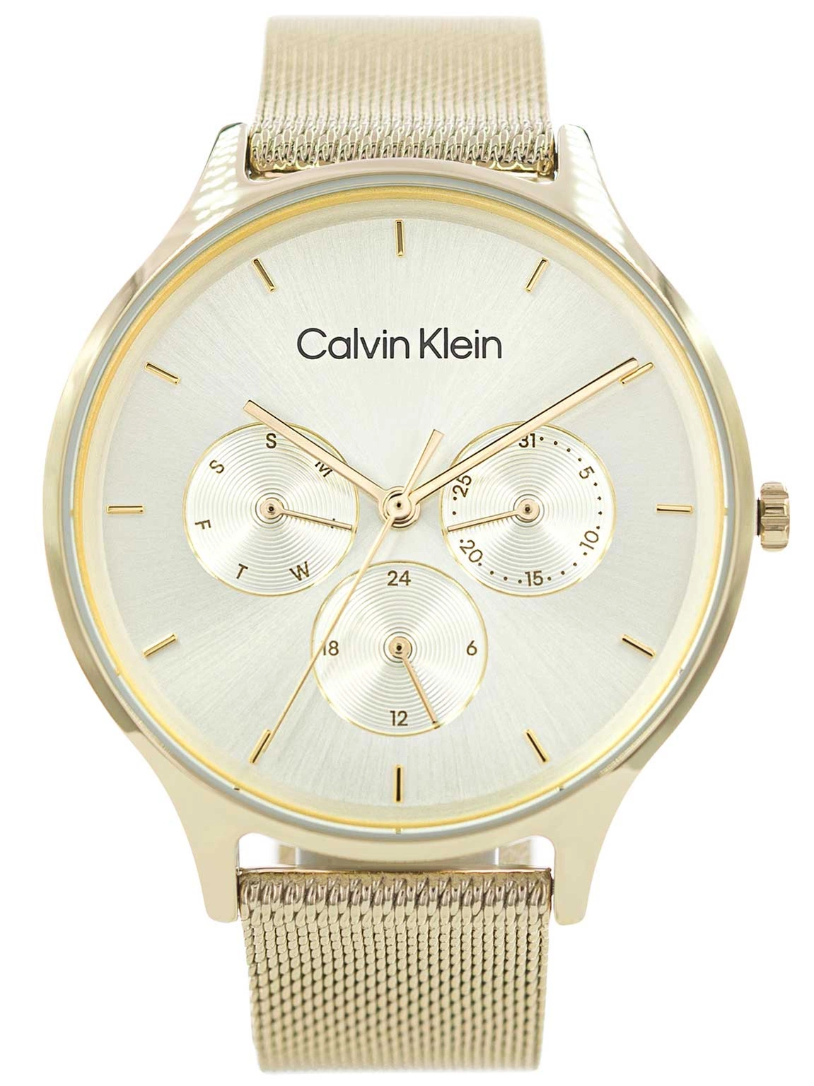 Calvin Klein 25200103 Timeless to połączenie stylu, jakości wykonania i wyjątkowej estetyki, za którą stoi renomowana, modowa marka. Piękny złotym odcień, dodaje blasku i wyjątkowego charakteru zegarkowi. Produkt w całości wykonany jest z odpornej na czynniki zewnętrzne stali szlachetnej. Bransoleta mesh posiada drobny splot, dzięki któremu zegarek idealnie dopasowuje się do nadgarstka i wygląda bardzo estetycznie. Na cyferblacie chronionym przez szkło mineralne, producent zamieścił rozbudowany datownik - tarcze wskazujące dzień tygodnia, miesiąca oraz zegar 24godzinny. Wyważony design i solidna konstrukcja sprawiają, że ten czasomierz jest nie tylko pięknym dodatkiem, ale również praktycznym elementem garderoby. Model 25200103 posiada w komplecie eleganckie pudełko, które doskonale sprawdzi się jako opakowanie na prezent.