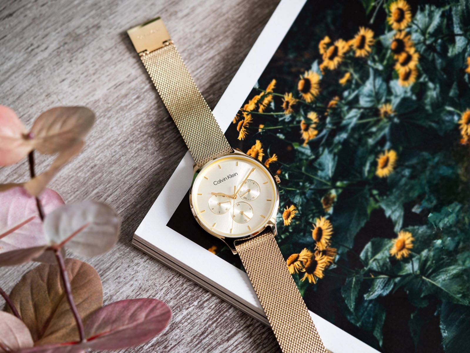 - Zegarek Damski Calvin Klein 25200103 złoty na bransolecie, posiada funkcje datownika.
