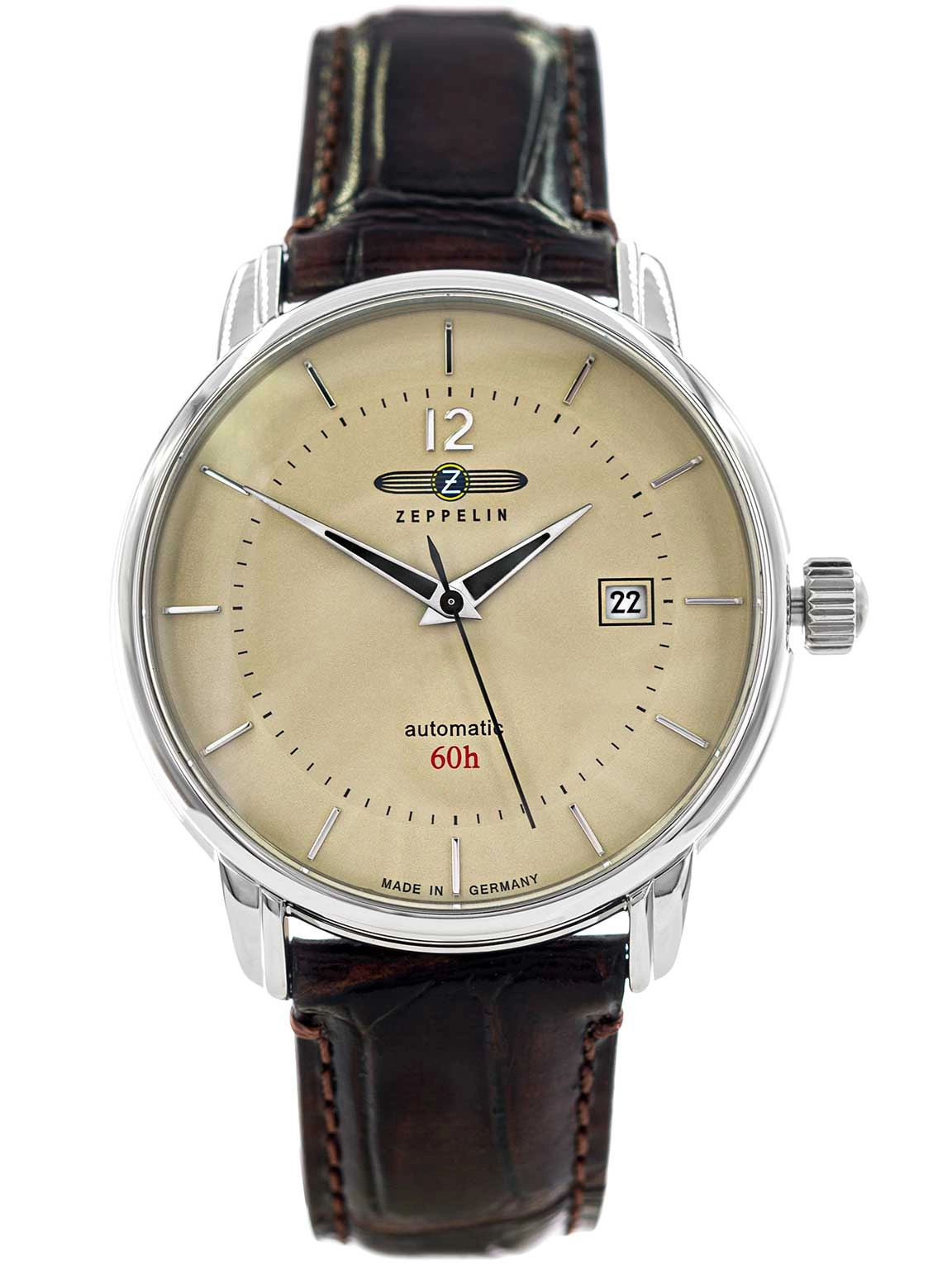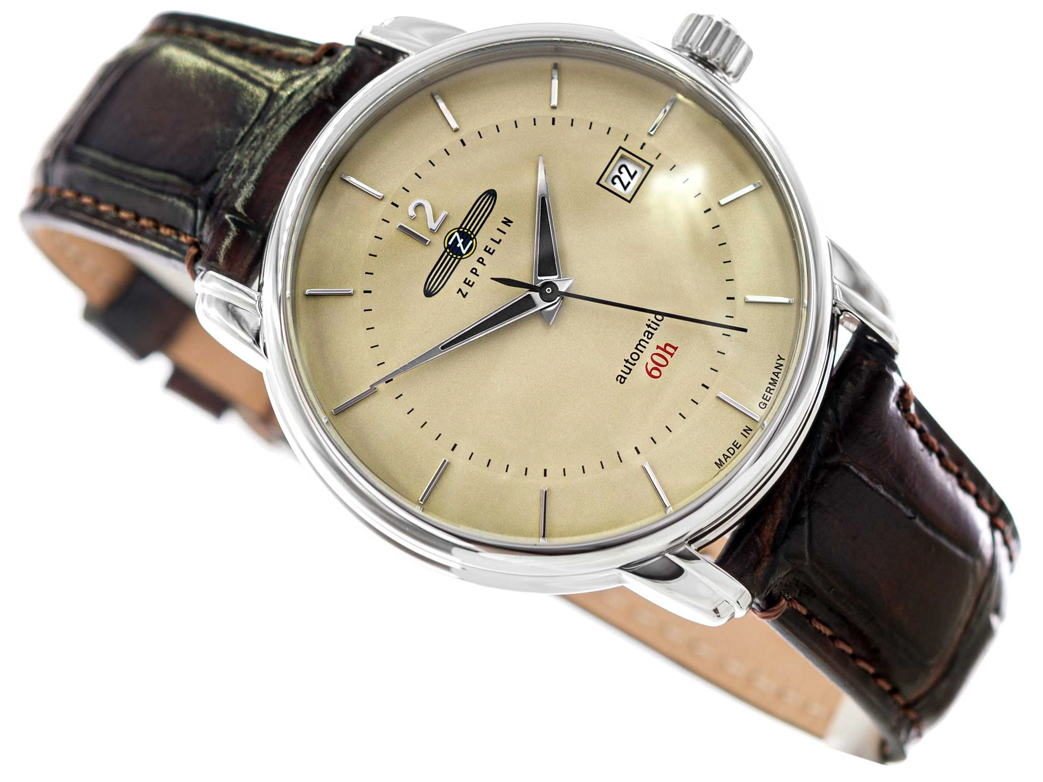 - Automatyczny Zegarek Męski Zeppelin 8160-5 brązowy na pasku, posiada funkcję datownika.