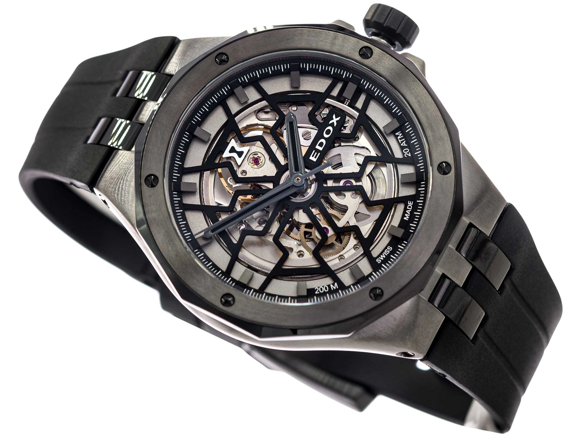 - Automatyczny Zegarek Męski Edox 85303 357GN NGN czarny na pasku. Zegarek wodoszczelny.