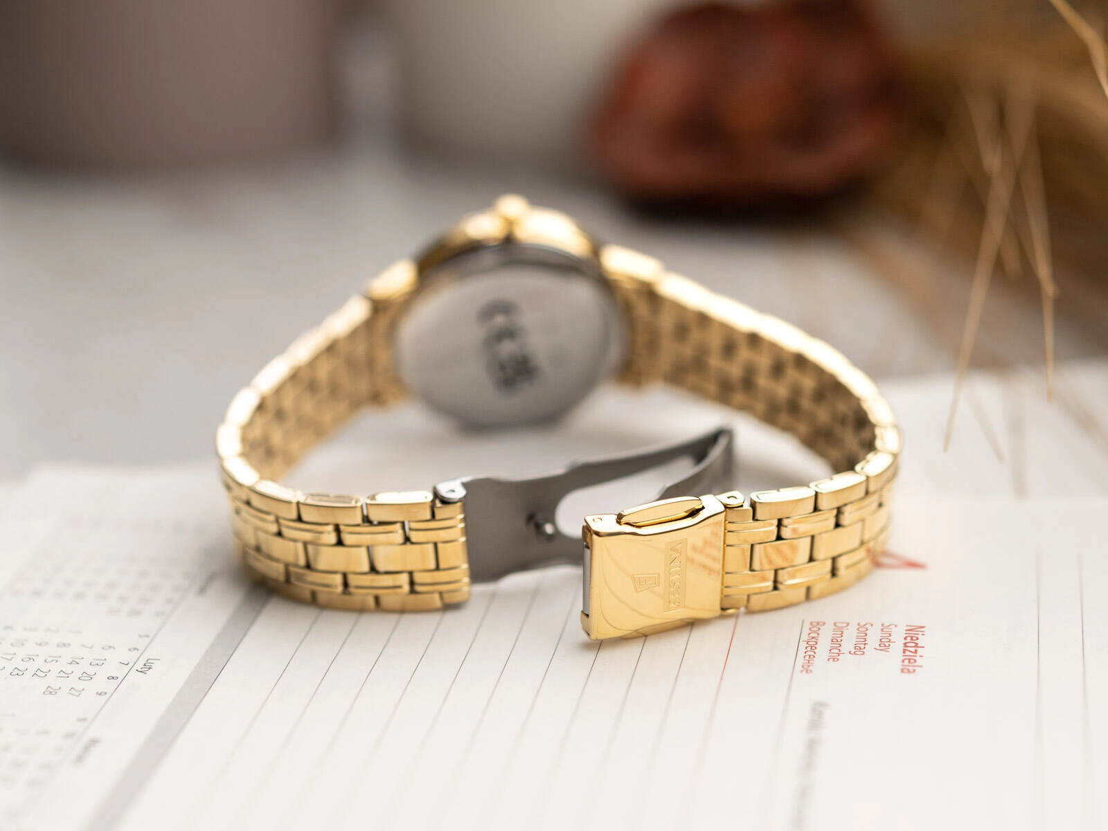 - Bransoleta: wykonana ze stali szlachetnej, która charakteryzuje się najwyższym stopniem odporności na korozję - pełne zamknięcie.