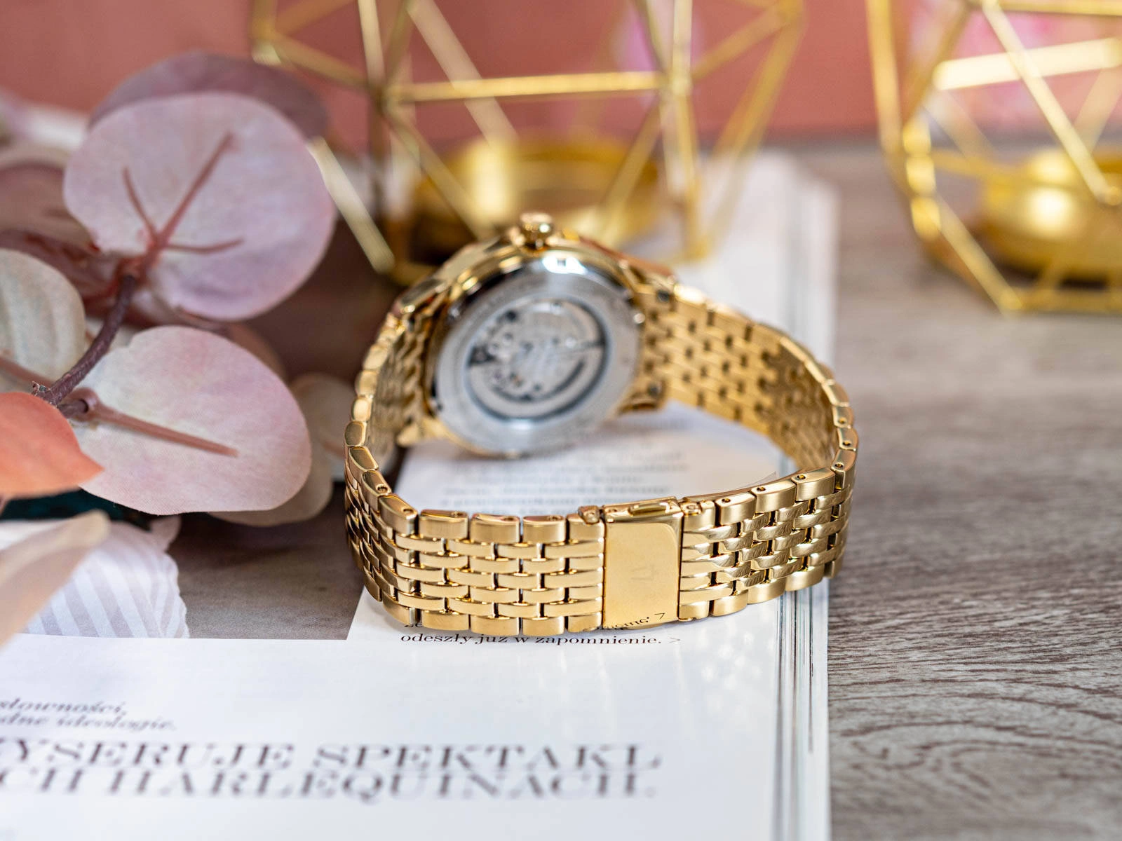- Mechanizm: automatyczny MIYOTA - made in Japan, 21 kamieni. Mechanizm czerpie energię z ruchu ręki. Możliwość ręcznego nakręcania. Zegarek nie wymaga wymiany baterii, dzięki pracy automatycznego naciągu.