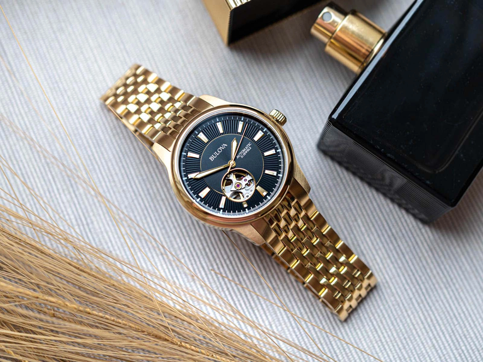 - Automatyczny Zegarek Męski Bulova 97A168 złoty na bransolecie.