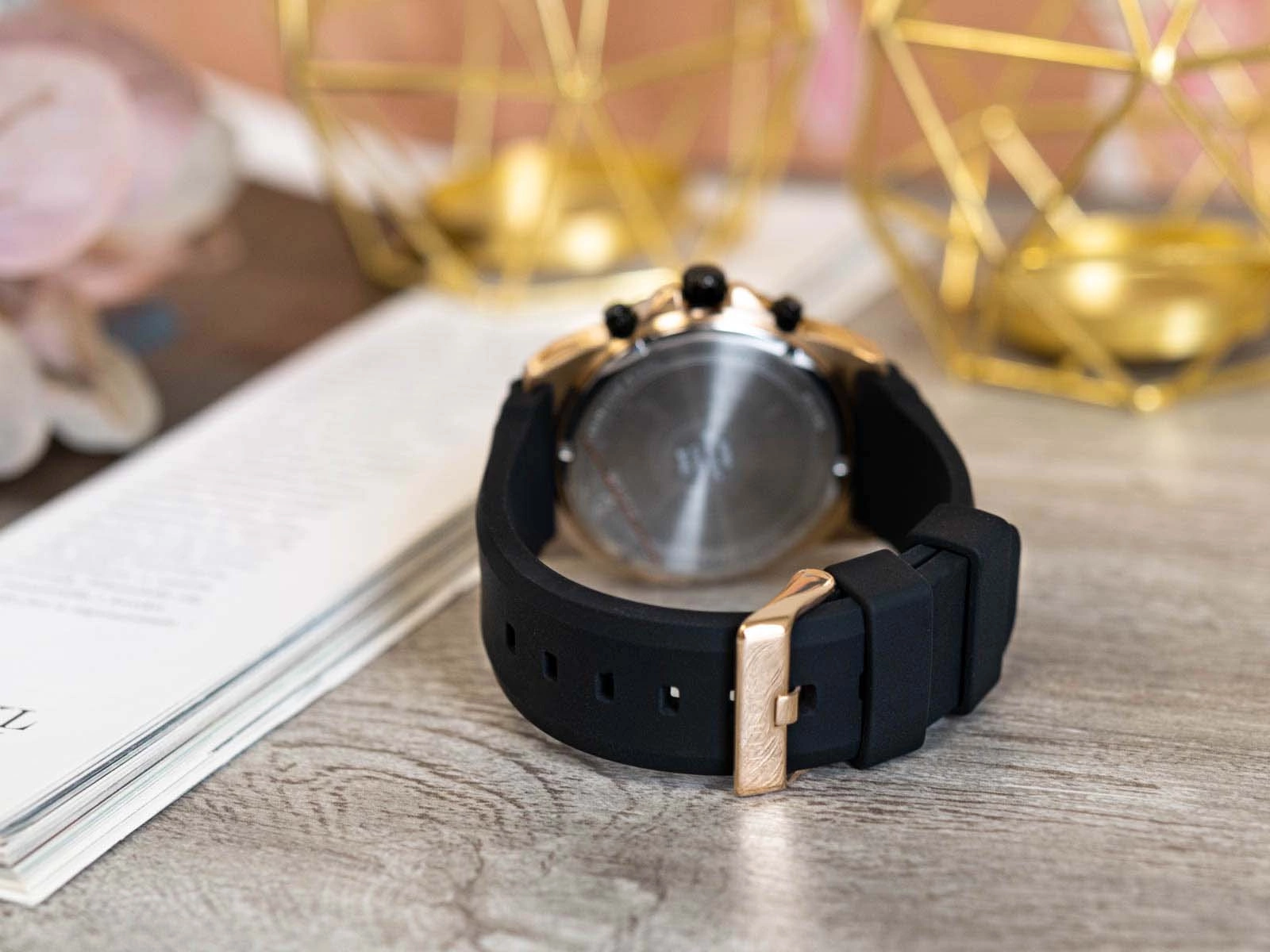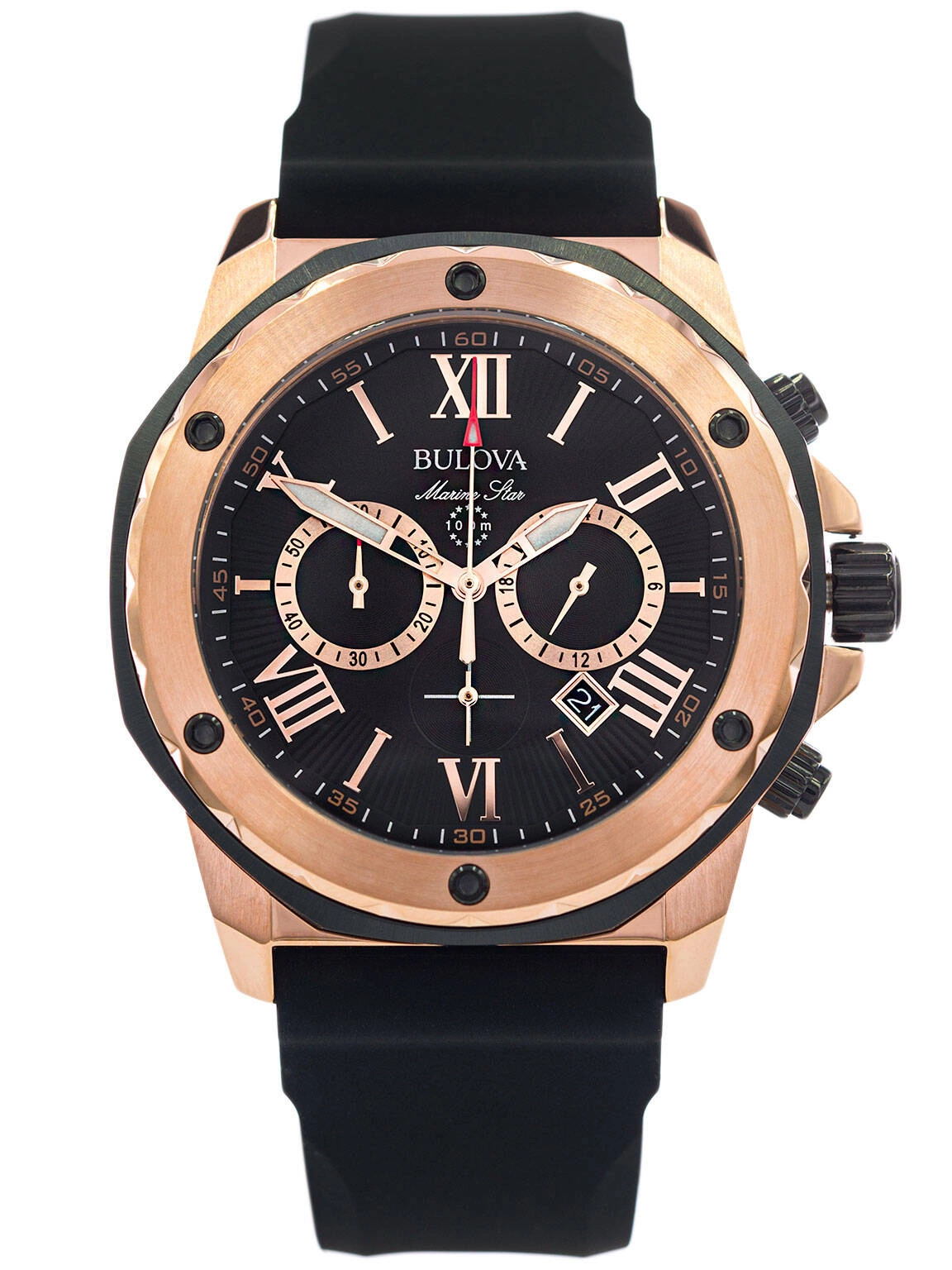 Bulova 98B104 Marine Star to doskonały wybór dla mężczyzn ceniących sobie nie tylko styl, ale także jakość i niezawodność. Połączenie różowego złota z czernią tworzy kontrastowy, a zarazem luksusowy wygląd. Czarny pasek z tworzywa sztucznego jest nie tylko lekki i wygodny, ale także solidny, co sprawia, że zegarek jest gotowy na aktywny tryb życia. To idealny wybór dla mężczyzn, którzy cenią sobie komfort. Czasomierz jest wodoszczelny, co oznacza, że można go nosić podczas pływania, mycia rąk i innych aktywności związanych z wodą, bez obawy o uszkodzenia. Dodatkowo, datownik umieszczony na tarczy pozwala na śledzenie aktualnej daty, co jest niezwykle praktyczne w życiu codziennym. Bulova 98B104 Marine Star doskonale uzupełni każdą męską stylizację, dodając jej wyjątkowego charakteru i klasy.