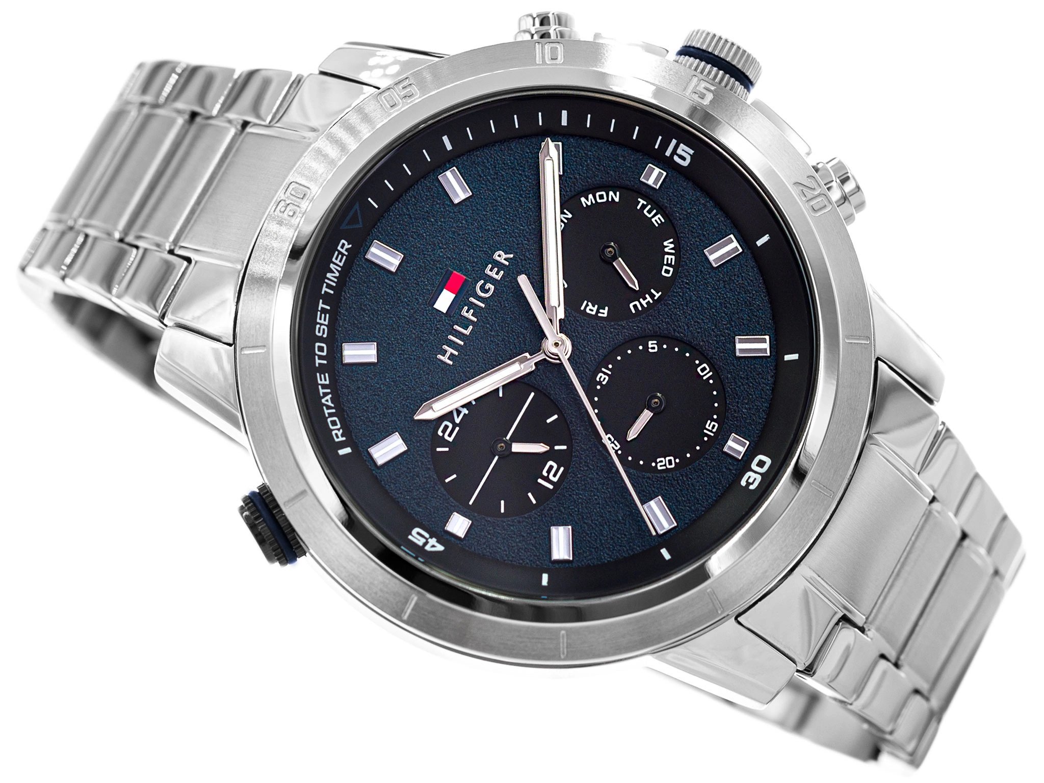 - Zegarek Męski Tommy Hilfiger 1792104 srebrny na bransolecie, posiada funkcję datownika.