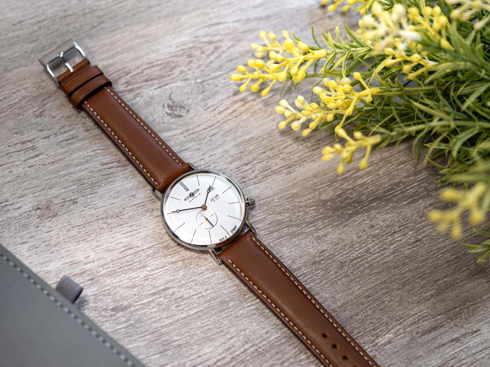 ZEPPELIN LZ120 7138-4 Rome to propozycja dla miłośników klasycznego, eleganckiego wzornictwa. Tarcza w beżowym, stonowanym kolorze przykryta jest wypukłym szkiełkiem mineralnym. Niezwykle wygodny, miękki pasek ze skóry cielęcej dopasuje się do każdego męskiego nadgarstka, nie powodując dyskomfortu noszenia. Czasomierz funkcjonuje w oparciu o kwarcowy mechanizm RONDA 6004.D zasilany baterią. Mechanizm ten jest znany na całym świecie ze swojej niezawodności i dokładności. Dodatkową funkcją jest datownik wskazujący aktualny dzień tygodnia zlokalizowany przy godzinie 2. Zeppelin Rome 7138-4 nie odstaje od standardów firmy i jest godny polecenia każdemu, kto szuka niezawodnego i przyciągającego wzrok zegarka. Eleganckie pudełko dołączone do tego modelu sprawia, że zegarek może stać się idealnym pomysłem na prezent.
