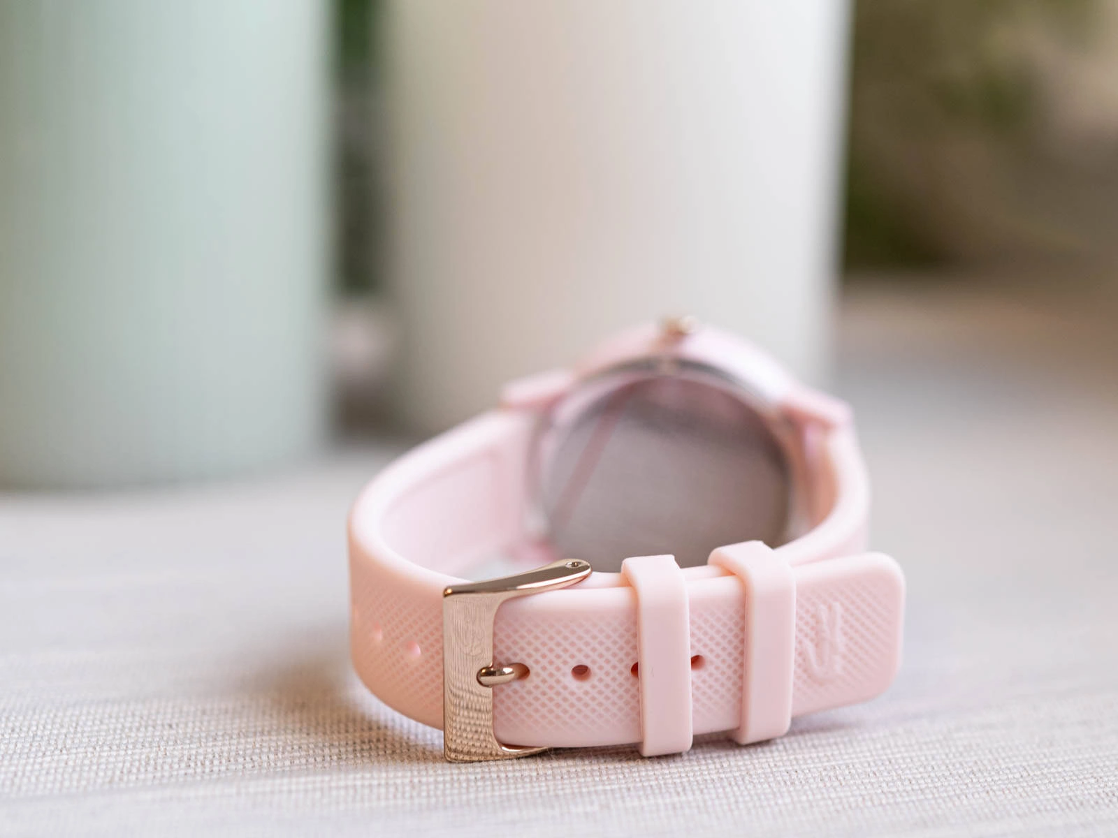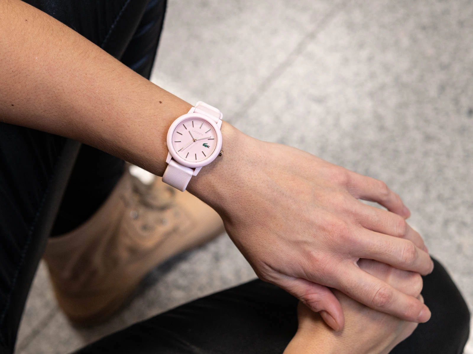Lacoste 2001213 12.12 to produkt przeznaczony dla kobiet, które lubią delikatne kolory i proste wzornictwo. Pasek jest niezwykle elastyczny, dzięki czemu dobrze dopasowuje się do kobiecego, subtelnego nadgarstka. Tworzywo sztuczne użyte do produkcji sprawia, że zegarek jest bardzo lekki i wygodnie się go nosi. Minimalistyczną tarczę chroni szkiełko mineralne, odporne na zarysowania. Na cyferblacie przy godzinie 3 umieszczono logo producenta w postaci słynnego krokodyla kojarzącego się z marką Lacoste. Wewnątrz pracuje niezwykle precyzyjny mechanizm kwarcowy zasilany wymienną baterią. Lacoste 2001213 odporny jest na deszcz i zachlapania. Czasomierz pokryty jest uroczym, różowym kolorem. Lacoste 2001213 to gustowny czasomierz o estetycznym designie. Do zegarka dołączone zostało eleganckie, markowe pudełko, które doskonale sprawdzi się jako opakowanie na prezent.