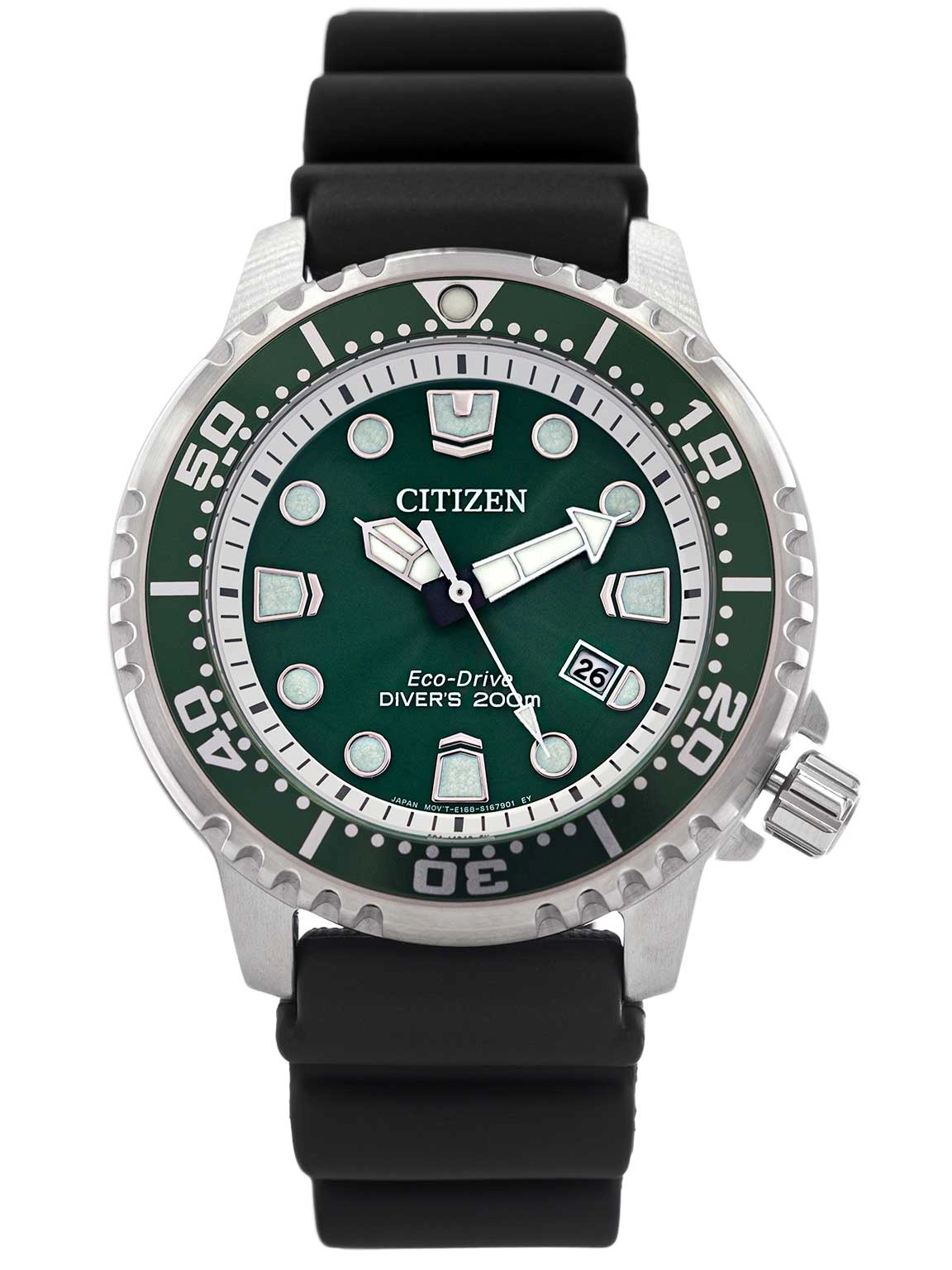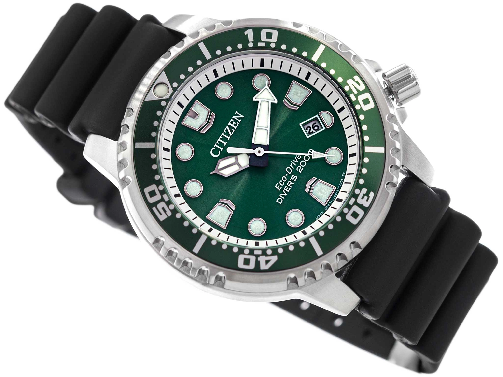 Citizen BN0158-18X Promaster Diver's  to męski, sportowy zegarek w stylu casual. Napędzany jest przez japoński mechanizm kwarcowy Cal. E168, który uważany jest za niezwykle precyzyjny. Srebrna koperta z wysokiej jakości stali szlachetnej została połączona z wygodnym, czarnym paskiem z tworzywa sztucznego. Model dobrze dopasowuje się do męskiego nadgarstka, dzięki czemu jest niebywale komfortowy w użytkowaniu. Na tarczy zostały zamieszczone panele słoneczne ładowane poprzez słońce i sztuczne światło, bez konieczności cyklicznej wymiany baterii. Fosforyzowane wskazówki i indeksy świecą po zmroku przez jakiś czas, po ich wcześniejszym naświetleniu. Citizen BN0158-18X posiada klasę wodoszczelności 200M - można w nim pływać, ale należy pamiętać, aby nie wciskać przycisków pod wodą. Dodatkowo model ten posiada datownik, który wskazuje dzień miesiąca. Nie mamy wątpliwości, że Citizen Promaster Driver przypadnie do gustu mężczyznom ceniącym sobie precyzyjny pomiar czasu oraz ciekawe wzornictwo. Bezspornie wpisze się w sportowy look, ale również stanie się idealnym dopełnieniem codziennej stylizacji. Model ten jest zapakowany w oryginalne pudełko załączone przez producenta, które stanowi świetny pomysł na prezent.