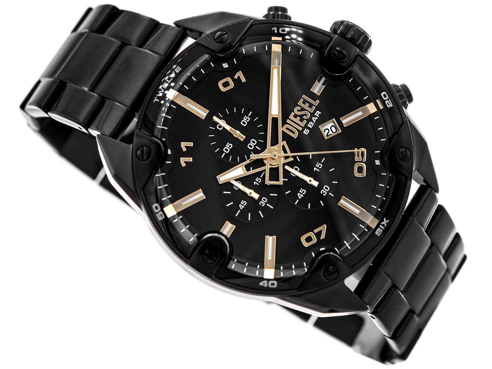 - Zegarek Męski Diesel DZ4644 czarny na bransolecie., posiada funkcje takie jak stoper i datownik.